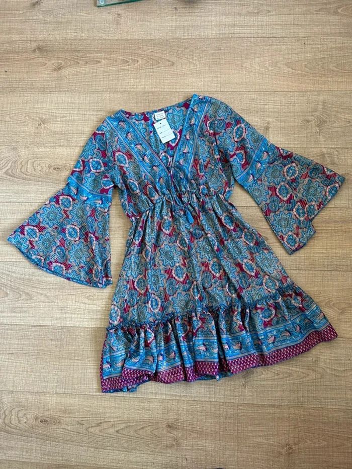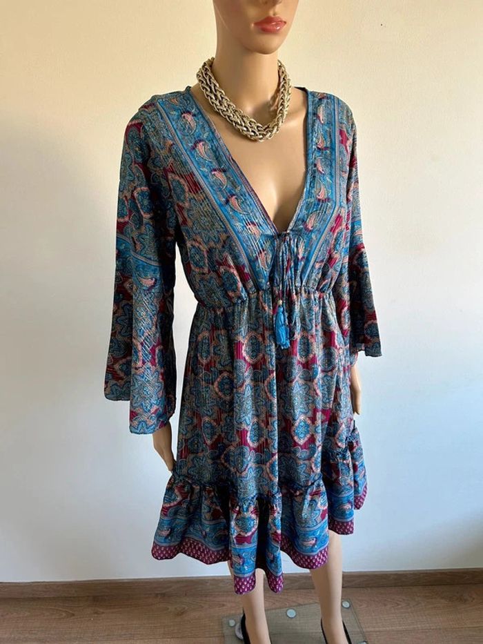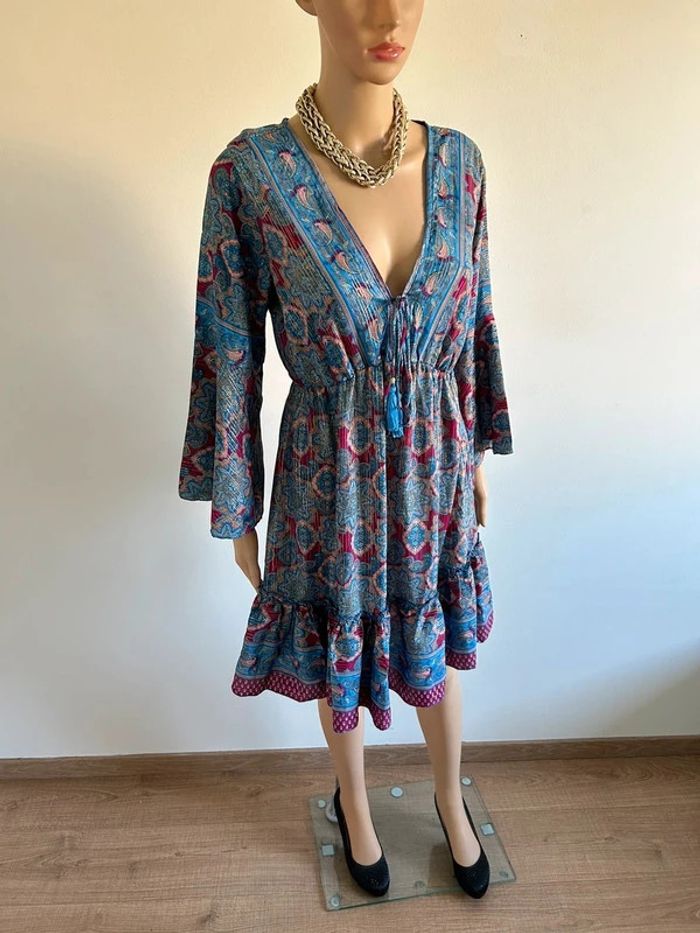 Robe imprimée neuve en soie à manches longues taille unique - photo numéro 1