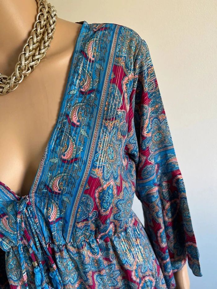 Robe imprimée neuve en soie à manches longues taille unique - photo numéro 11