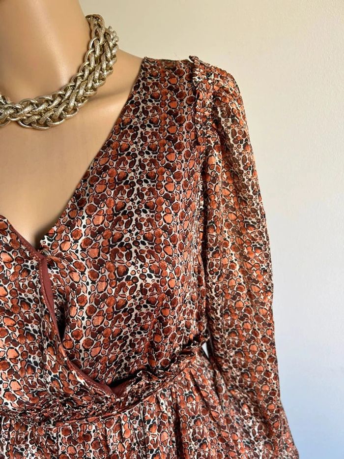 Magnifique robe satinée imprimée à manches longues, de marque Molly Bracken. Se resserré au niveau de la taille. Taille S. Jamais portée, état neuf. aisselle à aisselle 43 cms épaule à épaule 38 cms longueur manches 59 cms taille 43 cms longueur depuis épaule 84 cms 100% polyester Le prix reste négociable dans la limite du raisonnable. Un petit cadeau dans le colis 🌸 (Boîte 31)