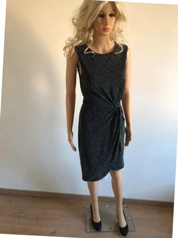 Robe noire et argentée pailletée neuve sans manches Morgan taille 36 - photo numéro 11