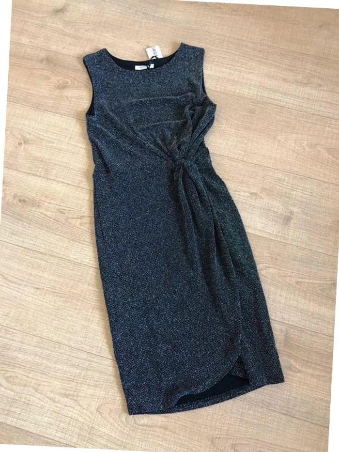 Robe noire et argentée pailletée neuve sans manches Morgan taille 36 - photo numéro 3