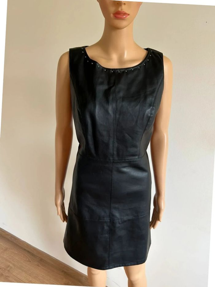 Magnifique robe noire en simili cuir, sans manches, de marque Breal. Fermeture dans le dos. Taille 38. Jamais portée, état neuf. aisselle à aisselle 42 cms taille 38 cms longueur depuis épaule 88 cms 100% synthétique Le prix reste négociable dans la limite du raisonnable. Un petit cadeau dans le colis 🌸