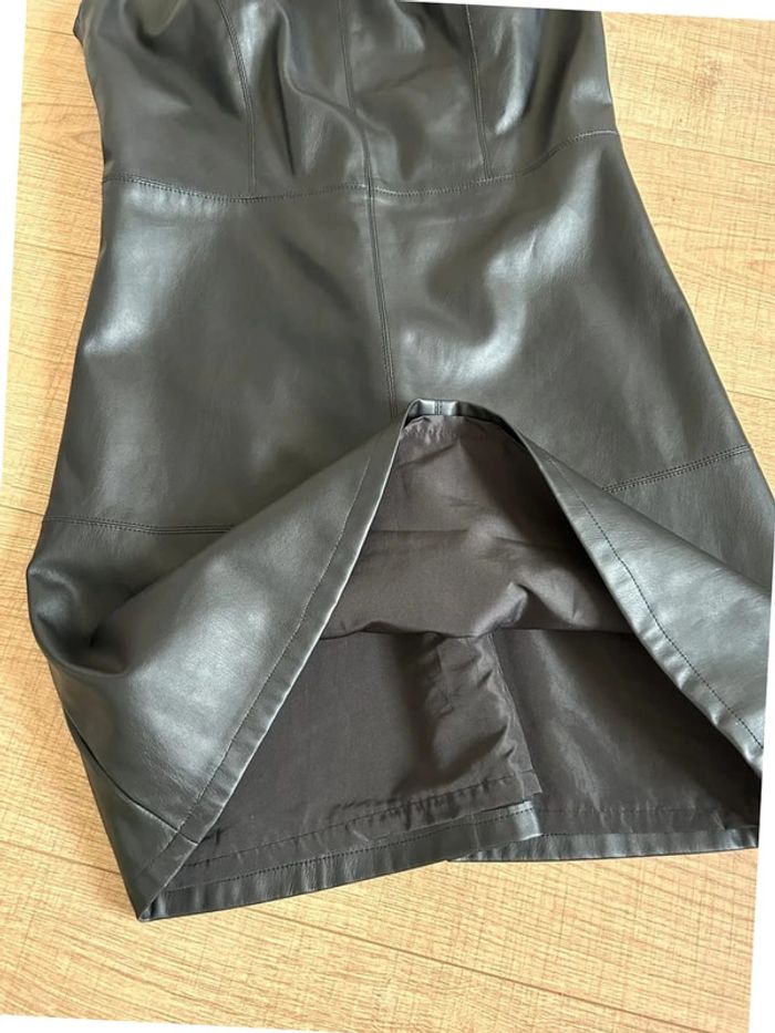 Robe noire en simili cuir sans manches Breal taille 38 jamais portée - photo numéro 3