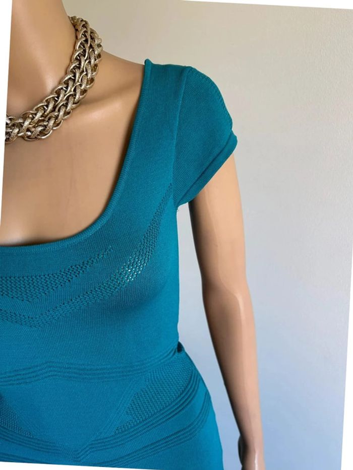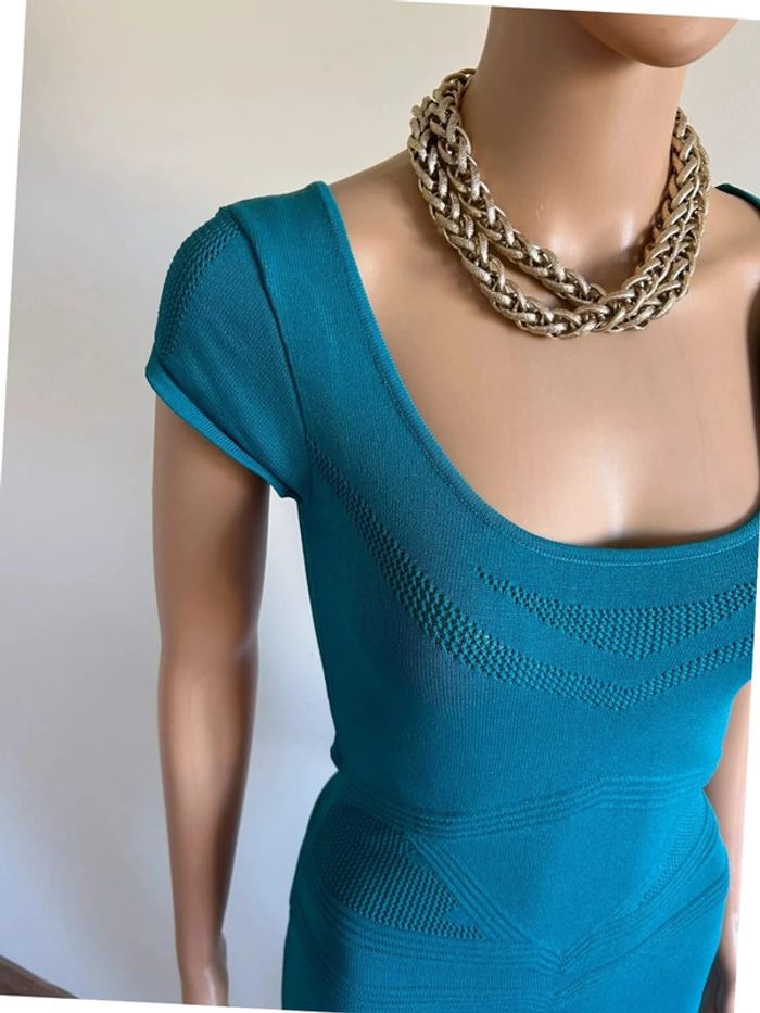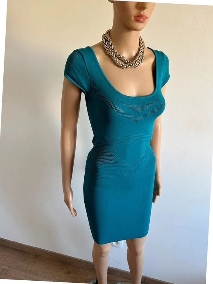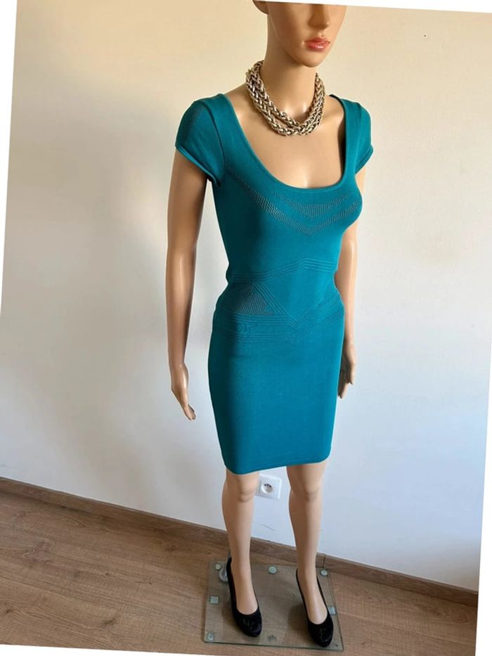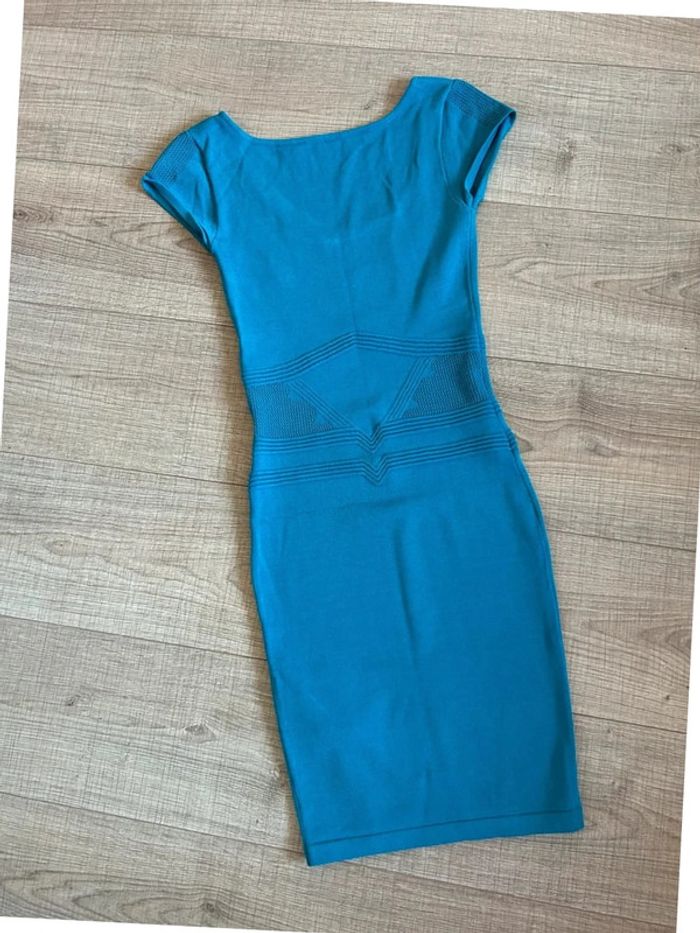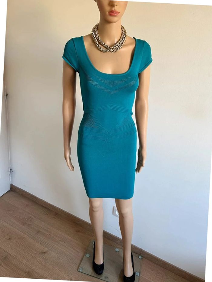 Magnifique robe bleue turquoise à manches courtes, de marque Morgan.