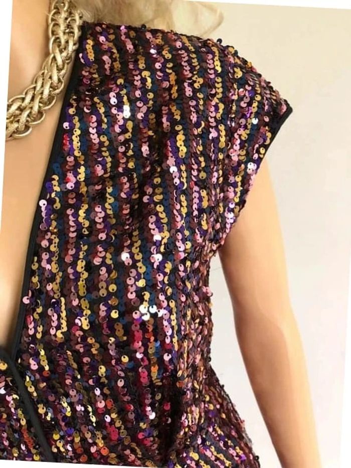 Robe multicolore neuve en sequins sans manches Morgan taille 38 (valeur 115€) - photo numéro 16