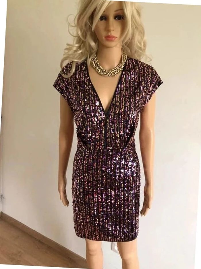 Robe multicolore neuve en sequins sans manches Morgan taille 38 (valeur 115€) - photo numéro 1