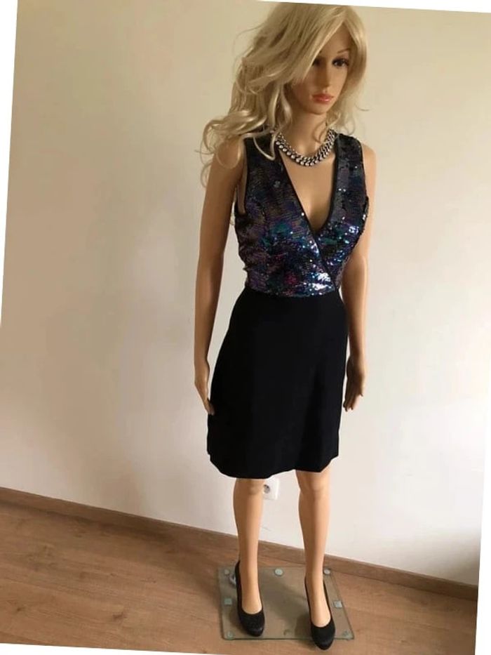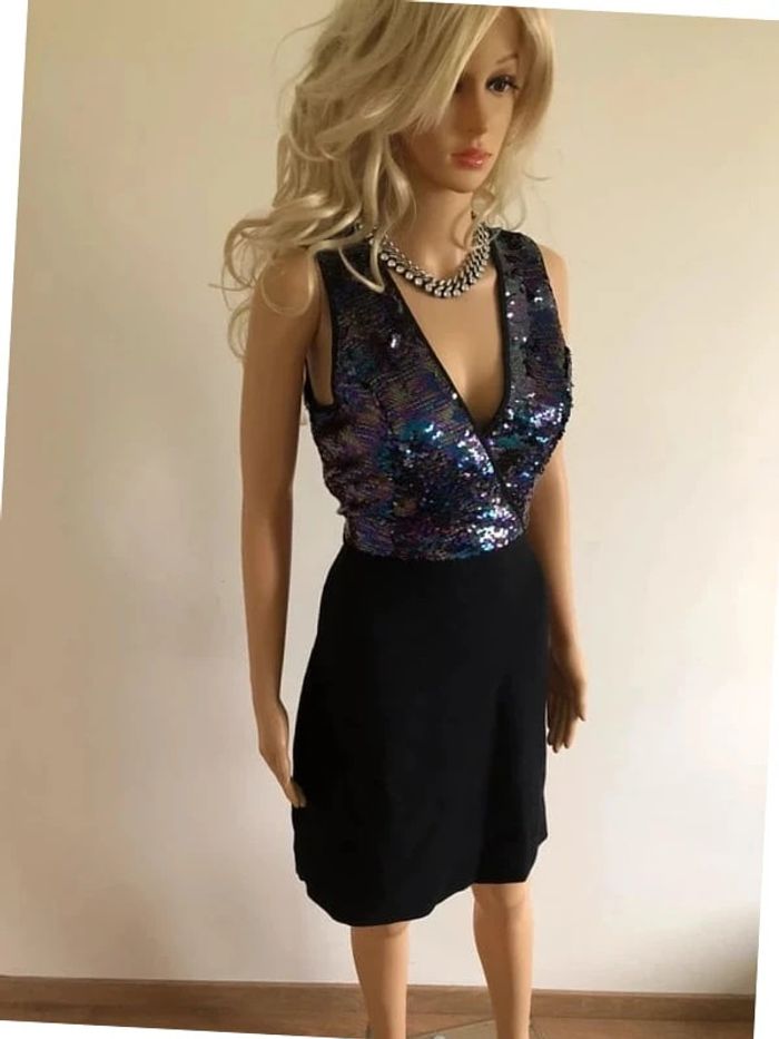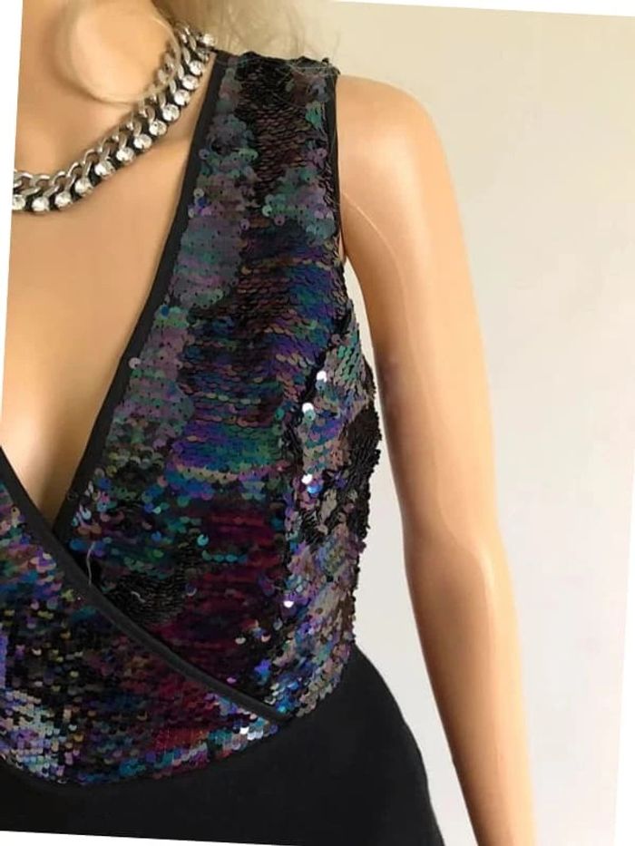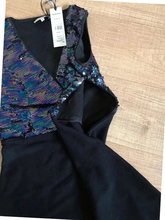 Robe noire neuve avec sequins multicolores Morgan taille M (valeur 85€) - photo numéro 4