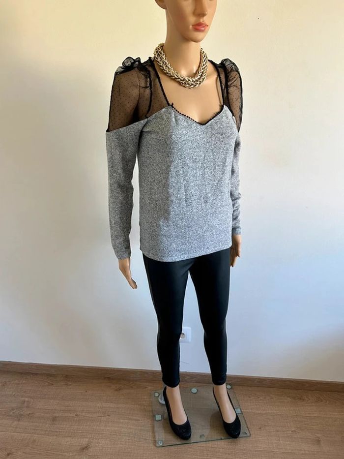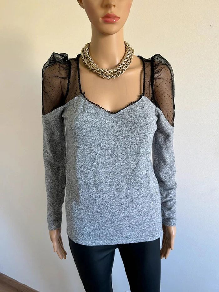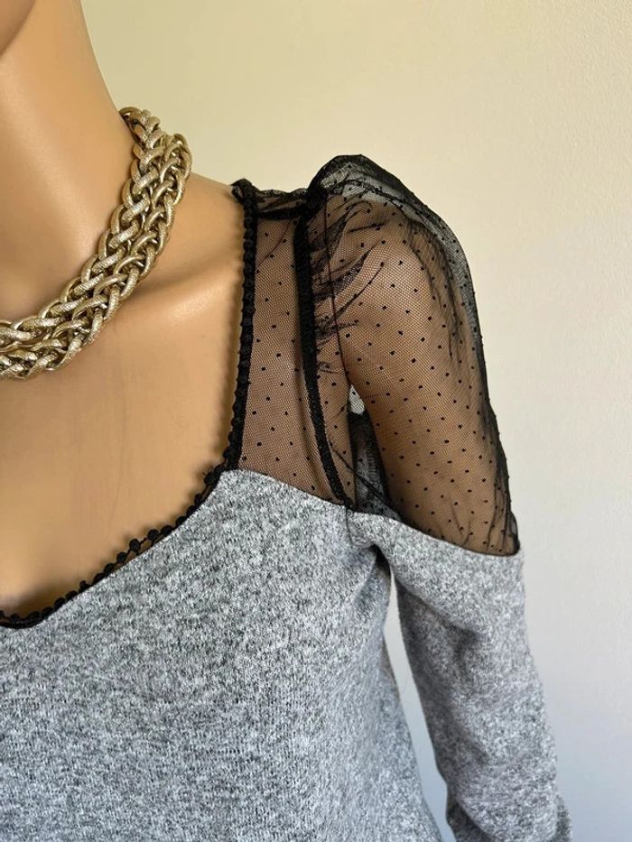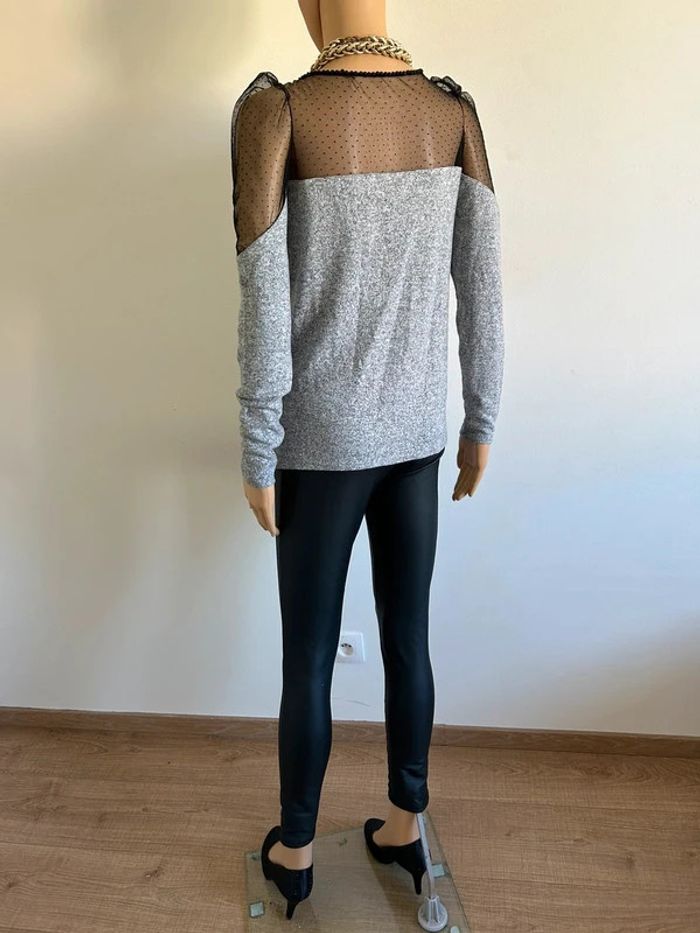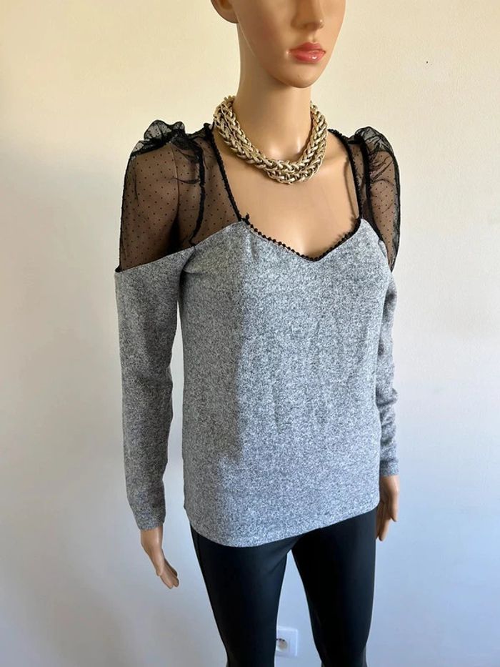 Haut gris et noir à manches longues avec plumetis Naf Naf taille S TBE - photo numéro 4