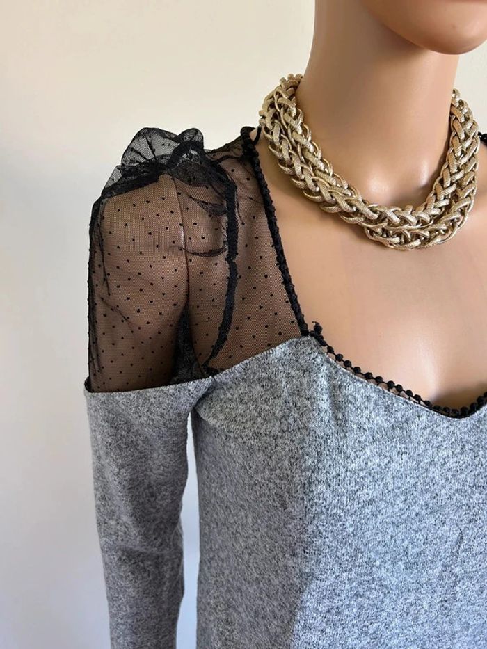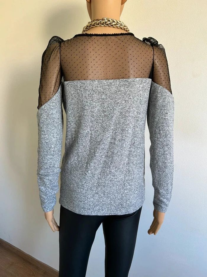 Haut gris et noir à manches longues avec plumetis Naf Naf taille S TBE - photo numéro 13