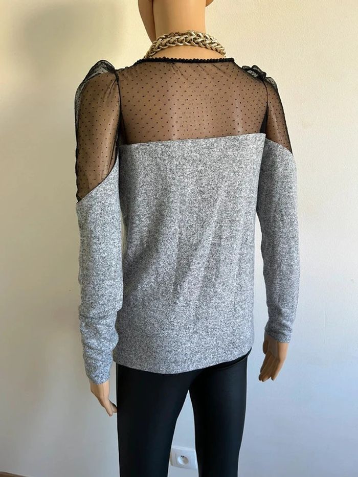 Haut gris et noir à manches longues avec plumetis Naf Naf taille S TBE - photo numéro 11