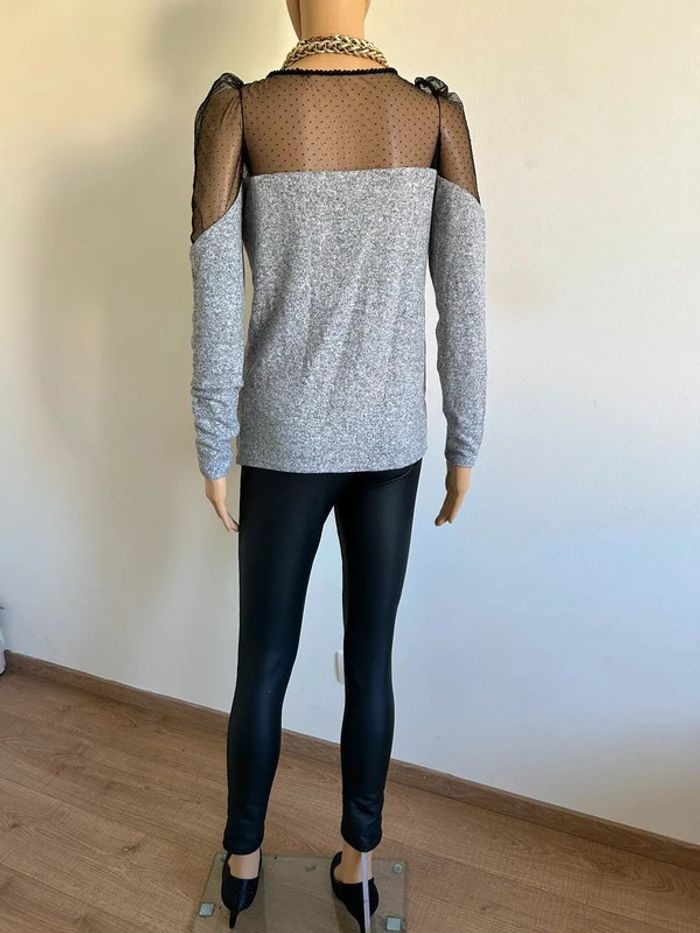 Haut gris et noir à manches longues avec plumetis Naf Naf taille S TBE - photo numéro 14
