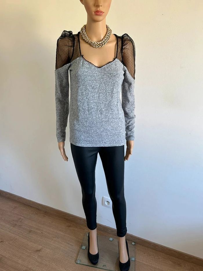 Haut gris et noir à manches longues avec plumetis Naf Naf taille S TBE - photo numéro 5