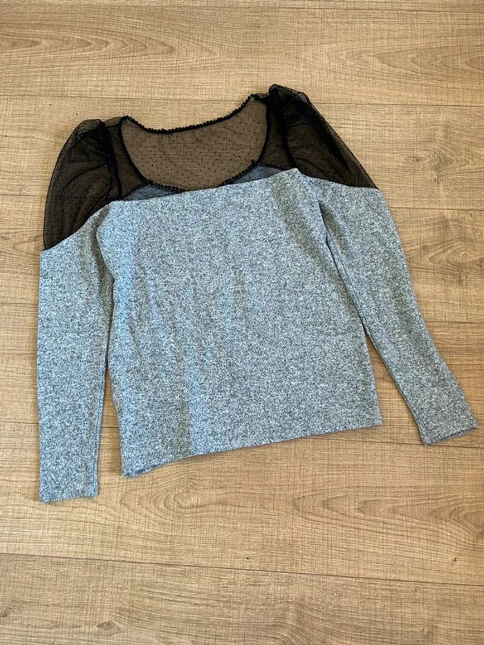 Haut gris et noir à manches longues avec plumetis Naf Naf taille S TBE - photo numéro 8
