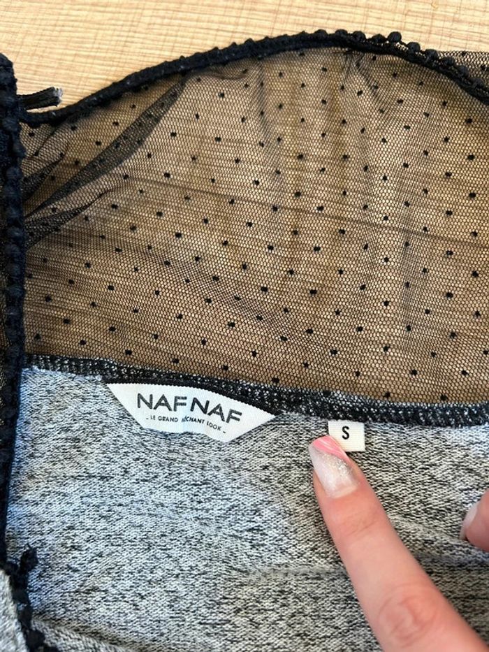 Haut gris et noir à manches longues avec plumetis Naf Naf taille S TBE - photo numéro 12