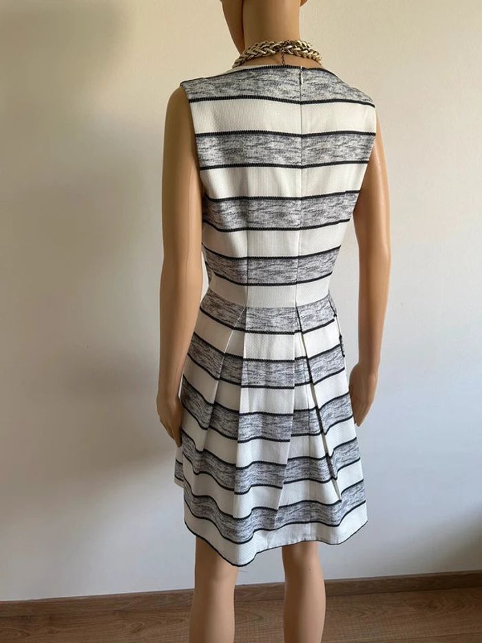 Jolie robe grise et blanche sans manches, de marque Molly Bracken. Fermeture dans le dos. Taille S. Jamais portée, état neuf. aisselle à aisselle 45 cms taille 38 cms longueur depuis épaule 88 cms 88% polyester et 12% elasthanne Le prix reste négociable dans la limite du raisonnable. Un petit cadeau dans le colis 🌸 (Boîte 29)