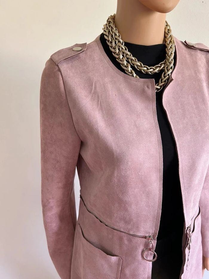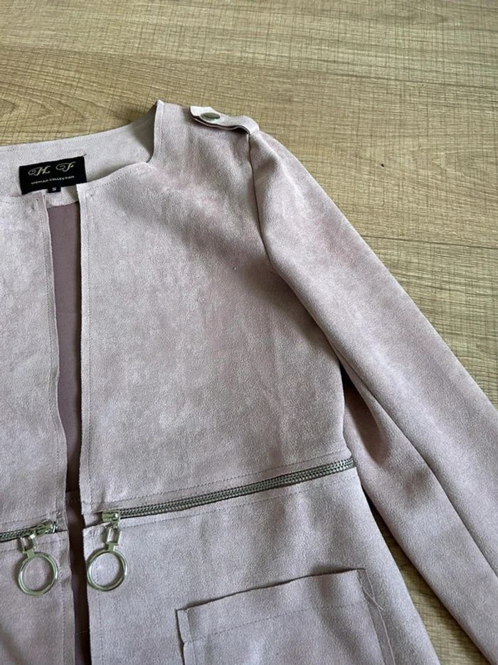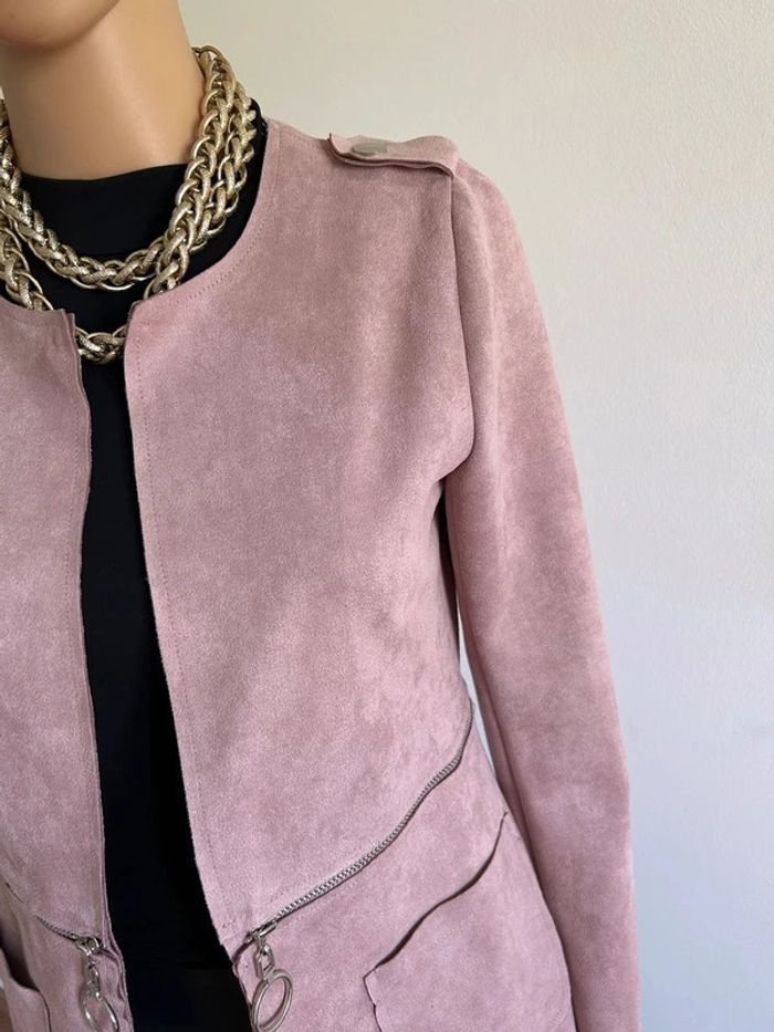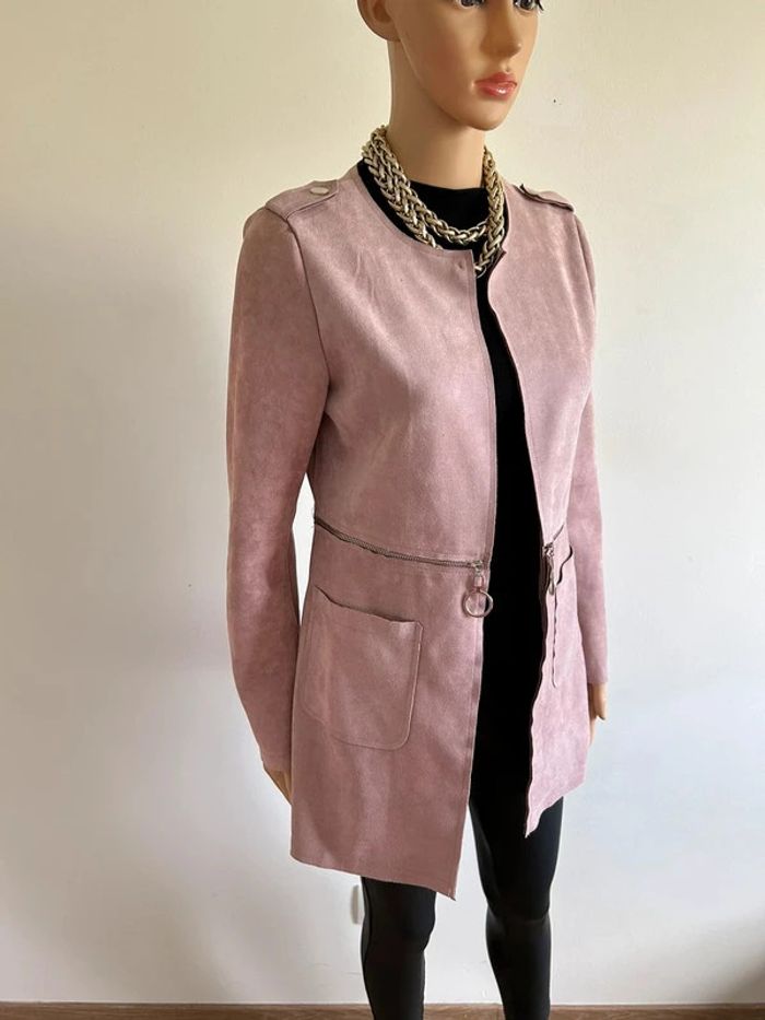 Veste rose mi longue en suédine taille S jamais portée - photo numéro 3