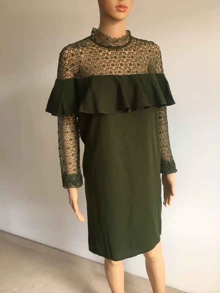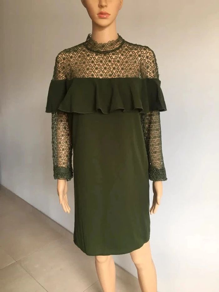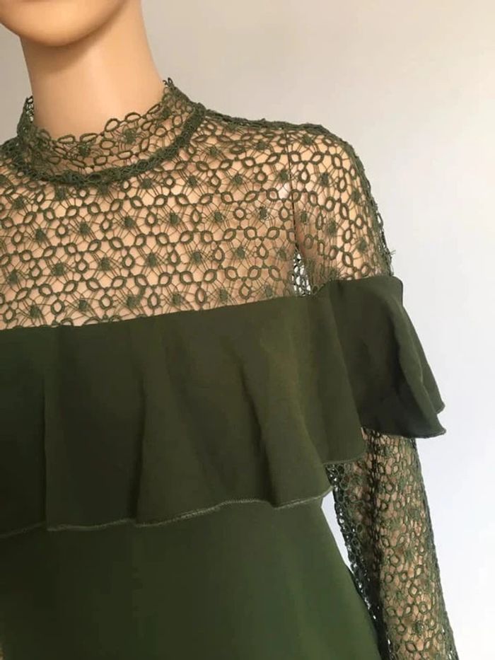 Robe verte kaki neuve à manches longues avec dentelle taille L - photo numéro 1
