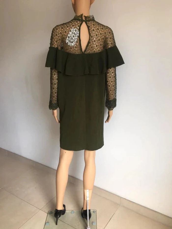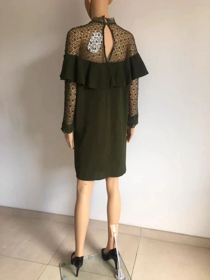 Robe verte kaki neuve à manches longues avec dentelle taille L - photo numéro 4