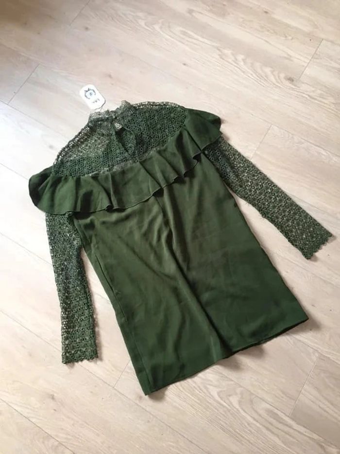 Robe verte kaki neuve à manches longues avec dentelle taille L - photo numéro 11