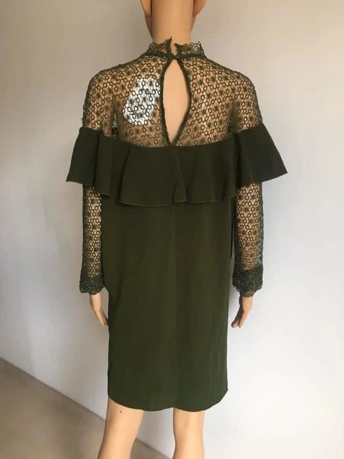 Robe verte kaki neuve à manches longues avec dentelle taille L