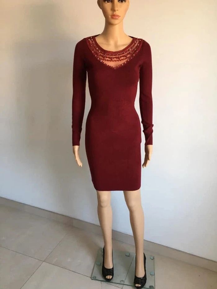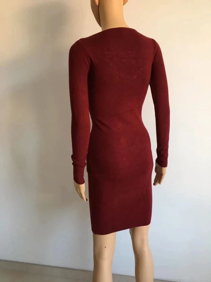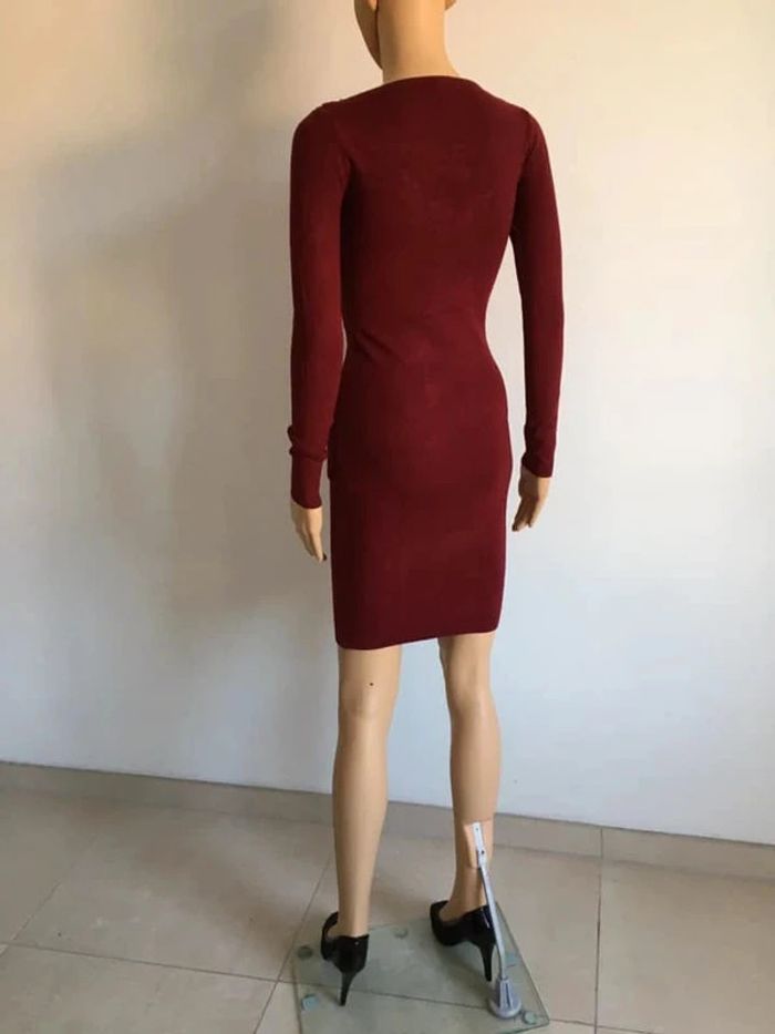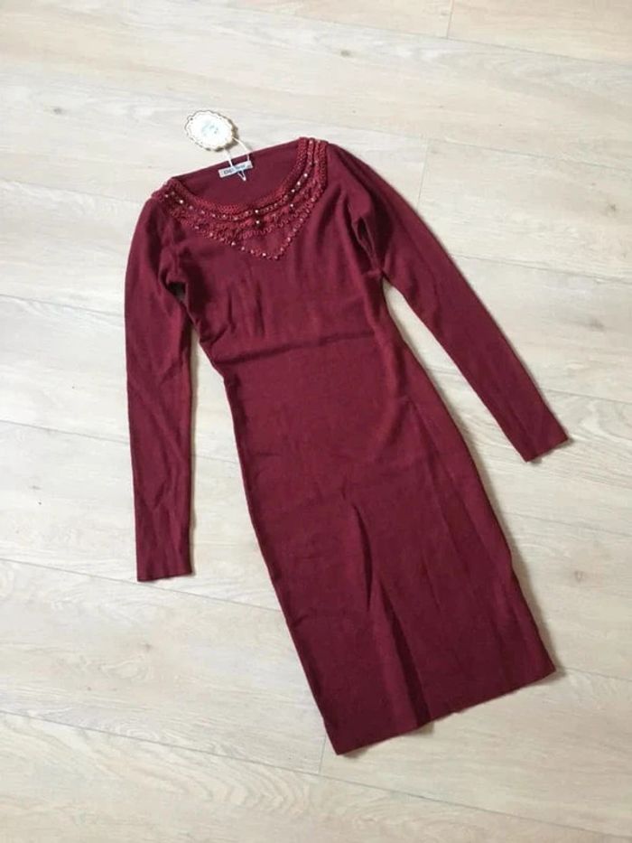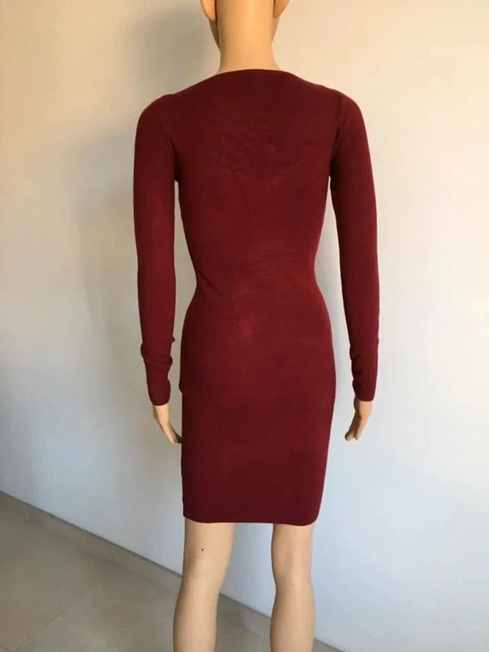 Robe pull bordeaux moulante neuve à manches longues taille unique - photo numéro 2