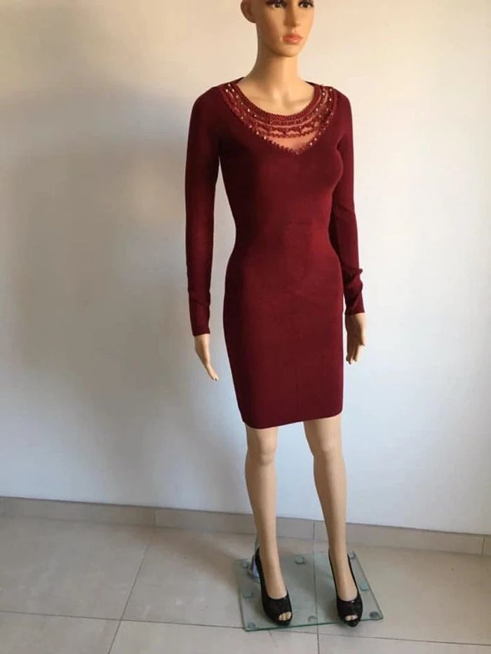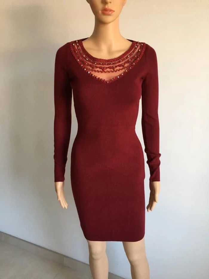 Jolie robe moulante bordeaux à manches longues. Taille unique qui convient jusqu’au petit 38. Elle est neuve avec étiquette. aisselle à aisselle 37 cms à 50 cms épaule à épaule 33 cms à 40 cms longueur manches 59 cms taille 32 cms à 41 cms longueur depuis épaule 90 cms Le tissu est très extensible 70% viscose, 20% polyamide et 10% elasthanne Le prix reste négociable dans la limite du raisonnable. Un petit cadeau dans le colis 🌸