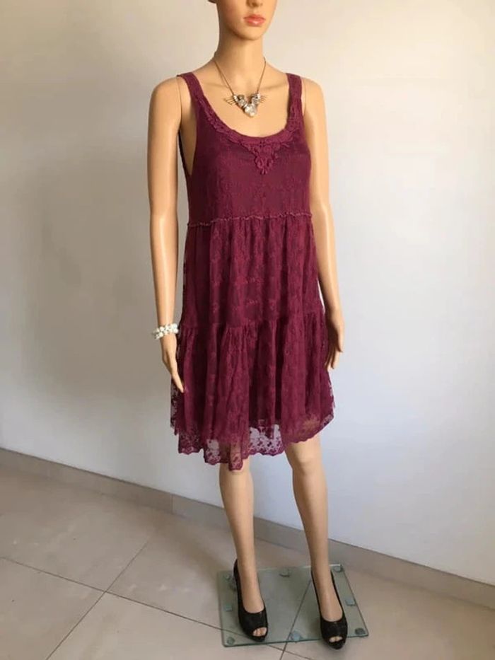 Robe bordeaux neuve en dentelle sans manches Molly Bracken taille unique - photo numéro 2