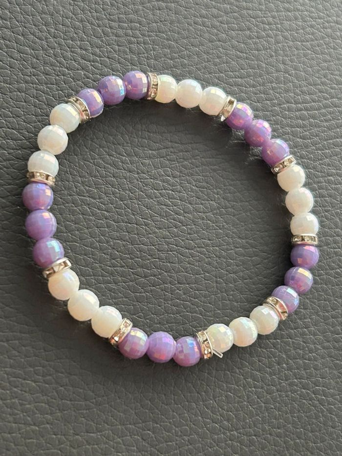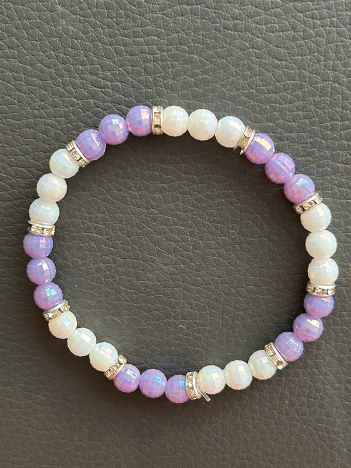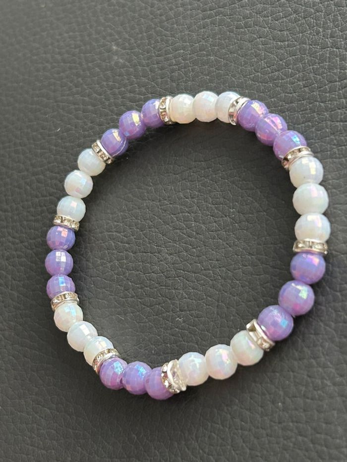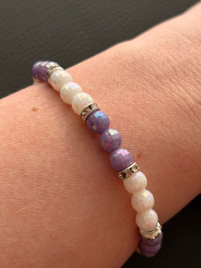 Bracelet blanc mauve et argenté en perles taille unique - photo numéro 1