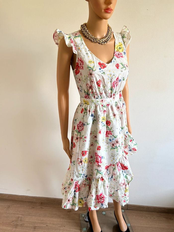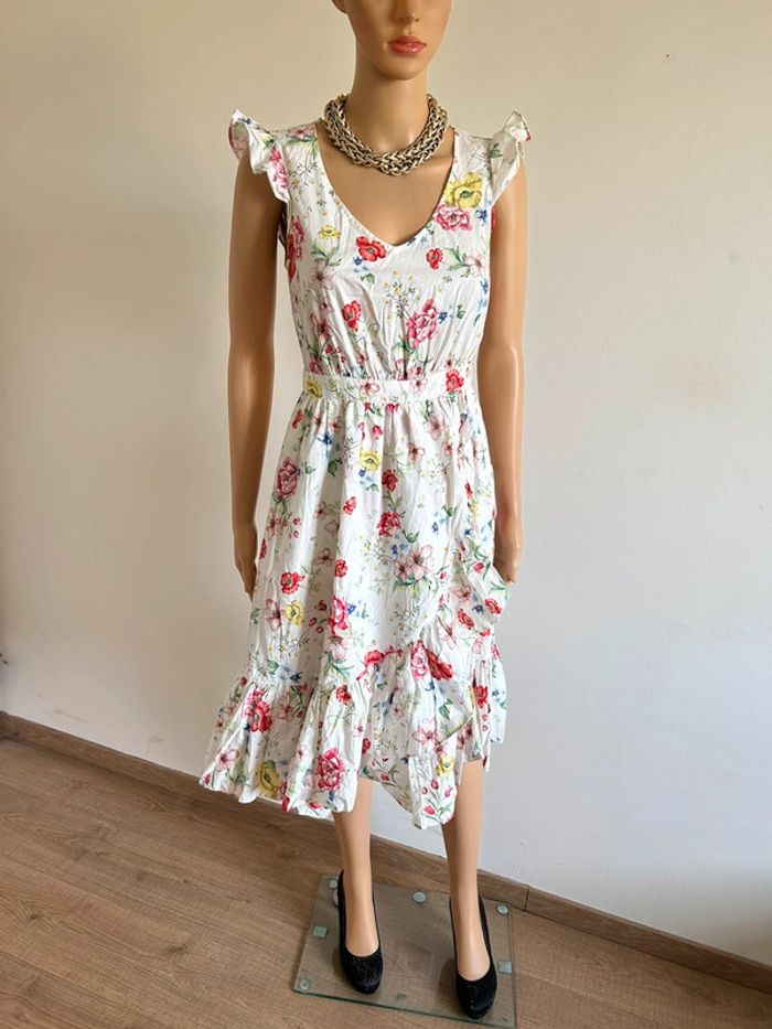 Robe blanche et imprimée fleurie sans manches Naf Naf taille 34 TBE - photo numéro 18