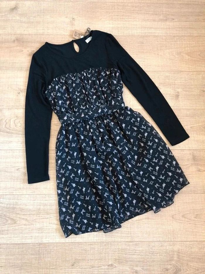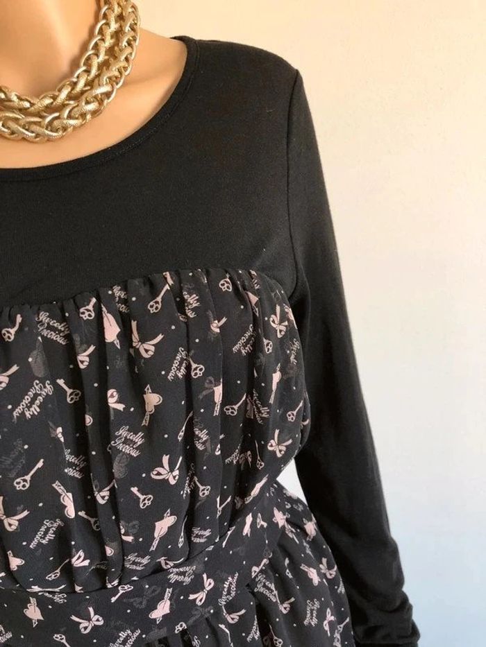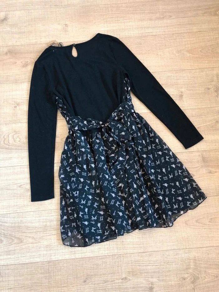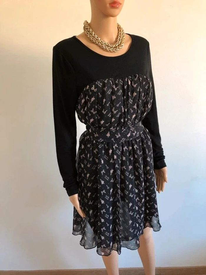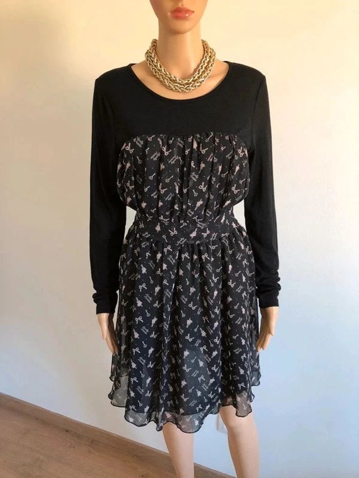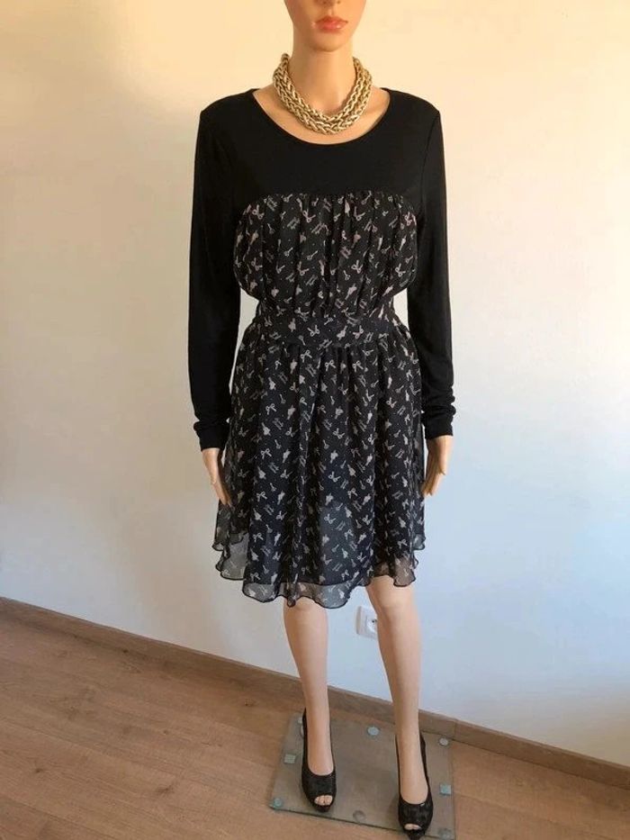 Jolie robe noire et beige imprimée, à manches longues, de marque Molly Bracken. Nœud à nouer dans le dos et fermeture sur le côté. Taille unique qui convient jusqu’au petit 38. Elle est neuve avec étiquette, jamais portée car trop petite pour moi. aisselle à aisselle 45 cms épaule à épaule 38 cms et plus longueur manches 64 cms et plus taille 35 cms longueur depuis épaule 90 cms le haut de la robe est extensible 40% coton, 55% polyester et 5% elasthanne Le prix reste négociable dans la limite du raisonnable. Un petit cadeau dans le colis. (Boîte 50)
