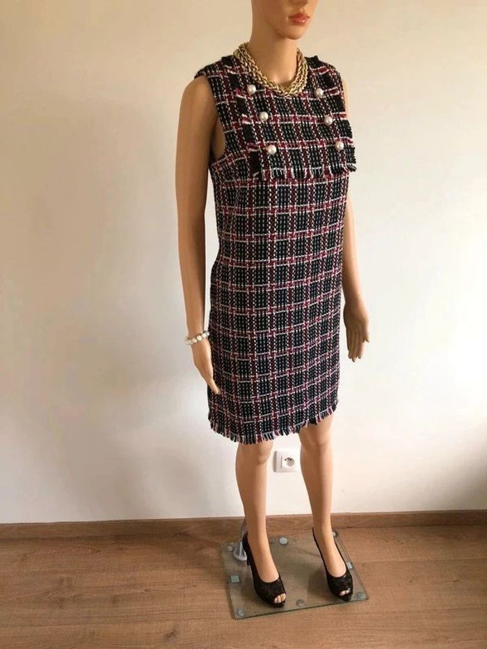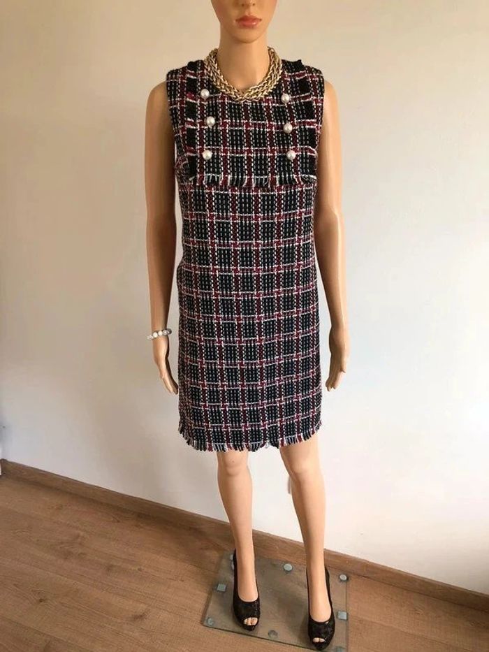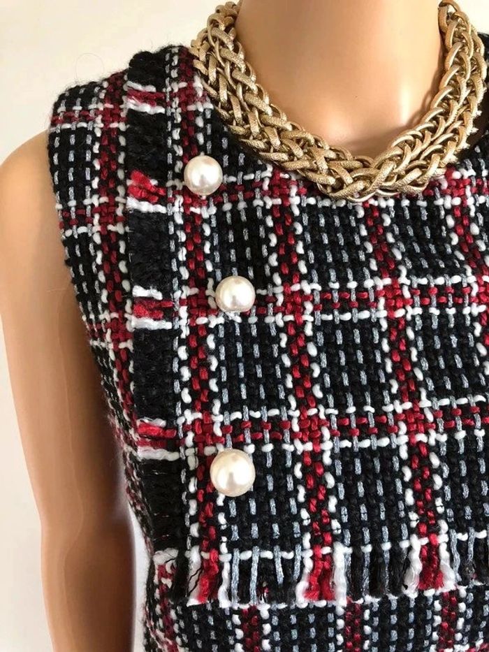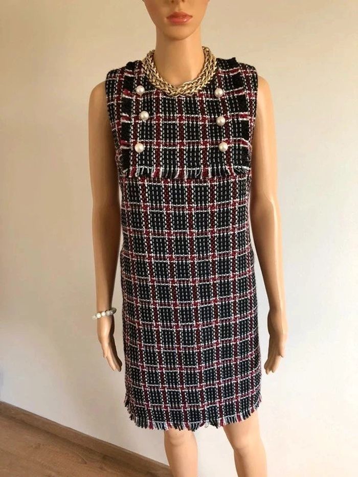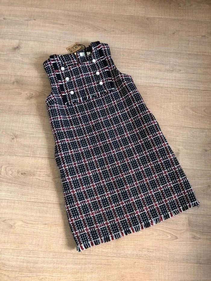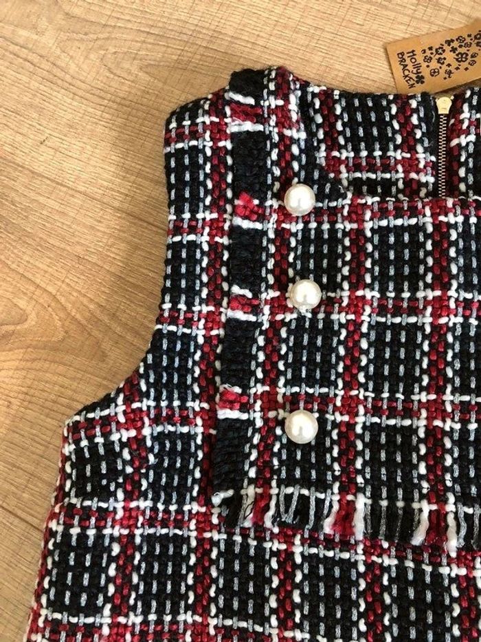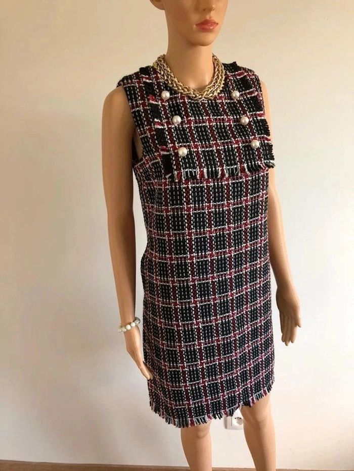 Jolie robe d’hiver sans manches, à carreaux, avec grosses perles nacrées sur le devant, de marque Molly Bracken. Fermeture dans le dos. Taille S qui taille grand et peut convenir pour un M. Elle est neuve avec étiquette (valeur 74€). aisselle à aisselle 43 cms taille 46 cms longueur depuis épaule 88 cms 100% polyester Le prix reste négociable dans la limite du raisonnable. Un petit cadeau dans le colis.