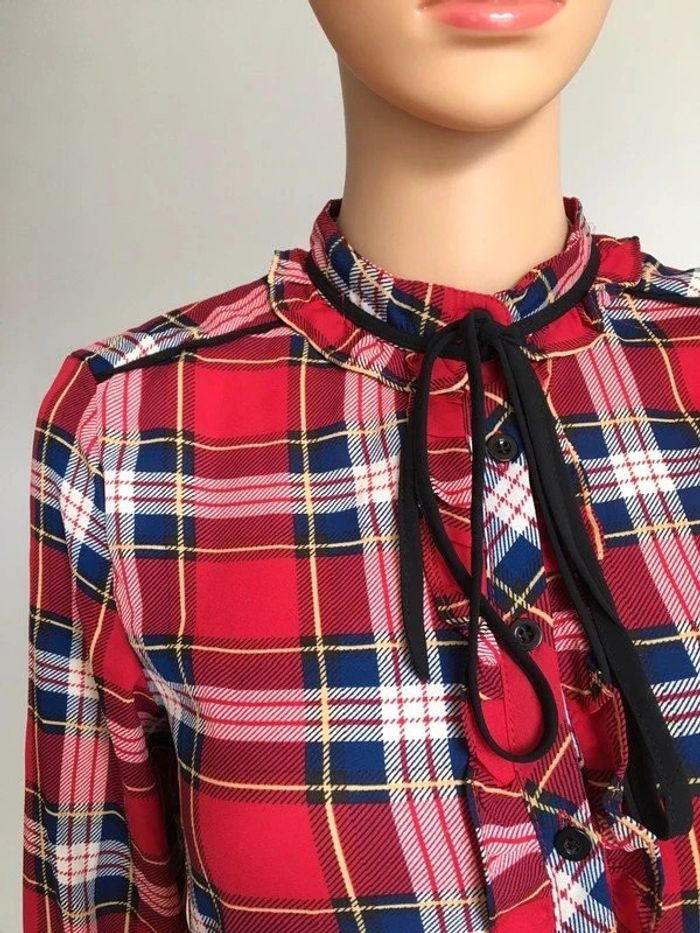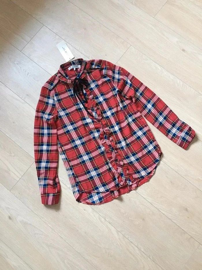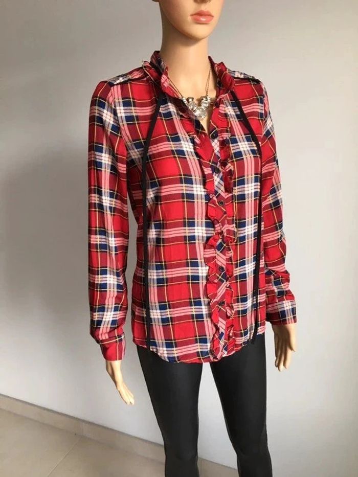 Chemise à carreaux , manches longues. Taille S/M. Elle est neuve avec étiquette. aisselle à aisselle 46 cms épaule à épaule 36 cms longueur manches 60 cms taille 45 cms longueur depuis épaule 65 cms 100% polyester Le prix reste négociable dans la limite du raisonnable. Un petit cadeau dans le colis.