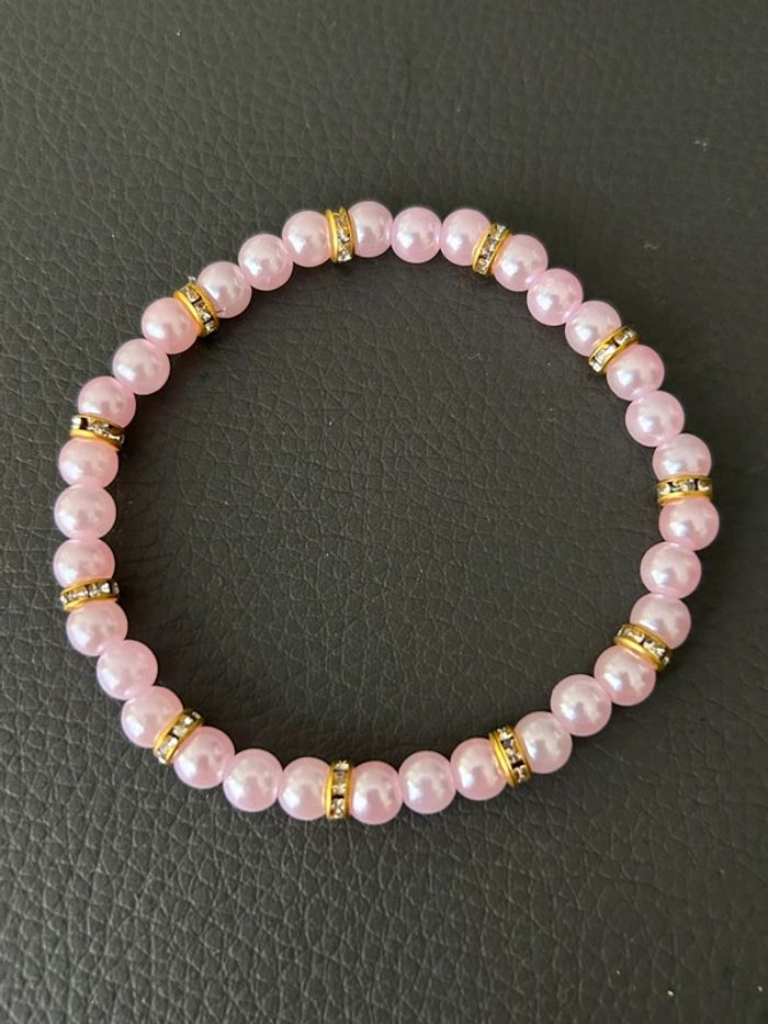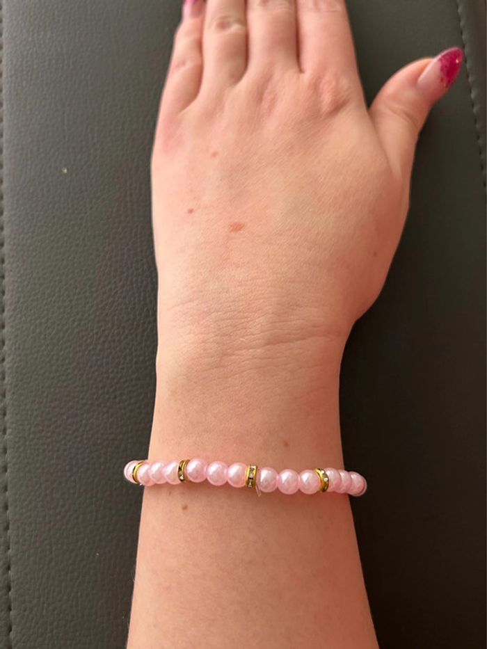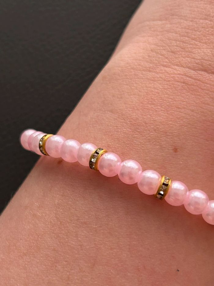 Bracelet rose clair et doré en perles taille unique - photo numéro 7