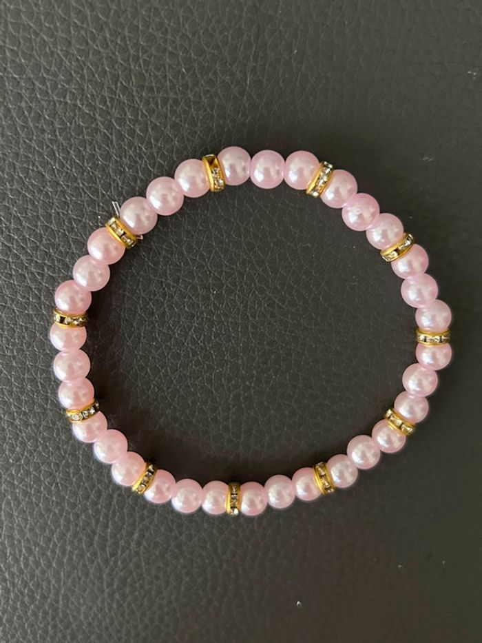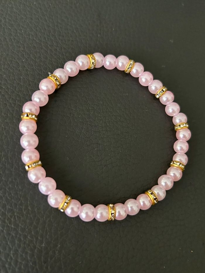 Joli bracelet rose clair et doré en perles. Taille unique. Jamais porté, état neuf.