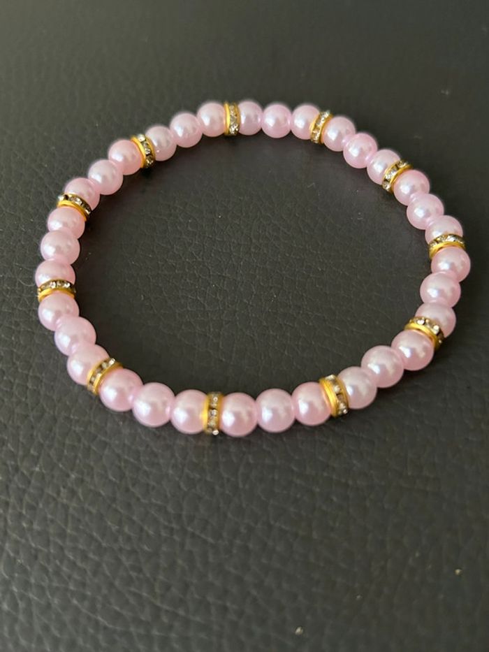 Bracelet rose clair et doré en perles taille unique - photo numéro 1