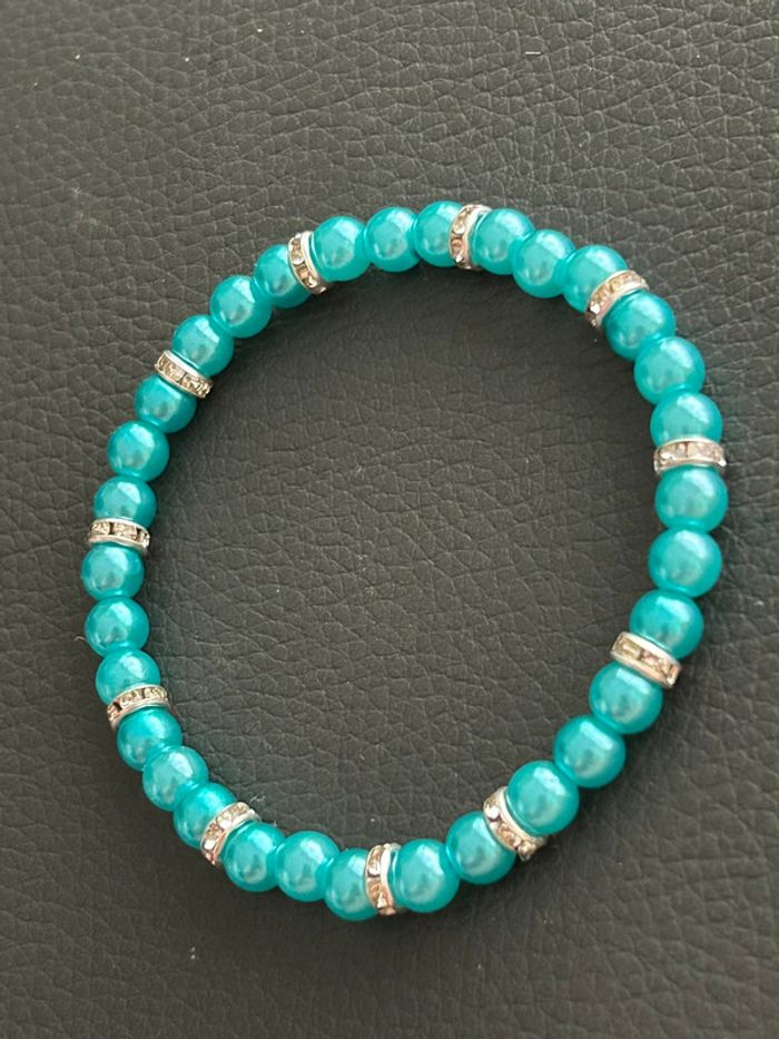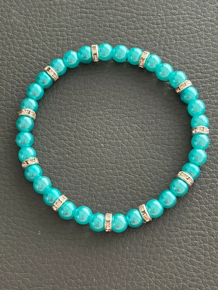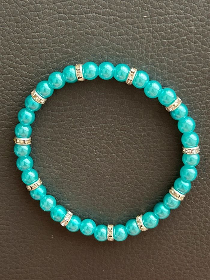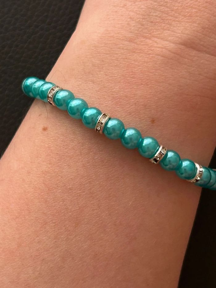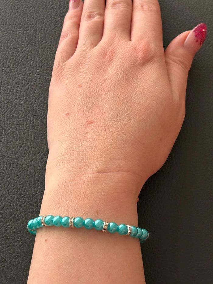 Bracelet vert turquoise et argenté en perles taille unique - photo numéro 7