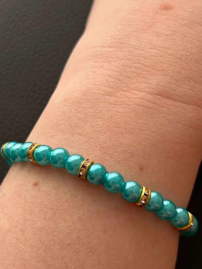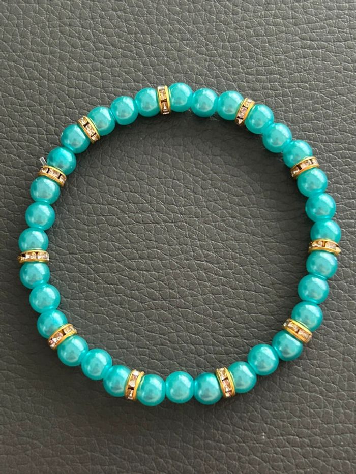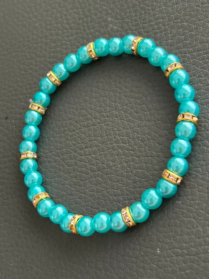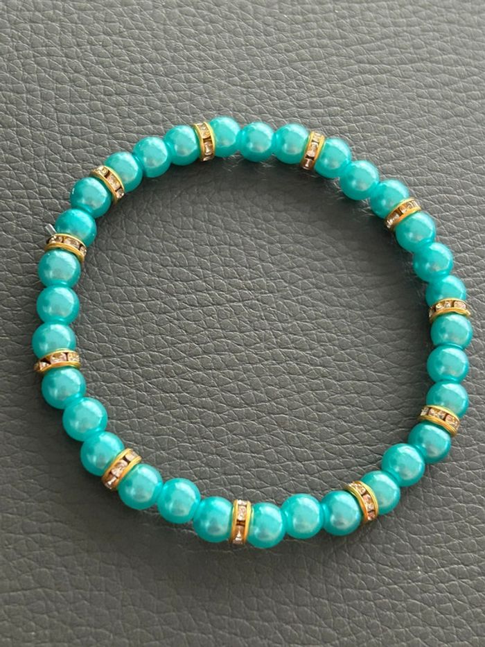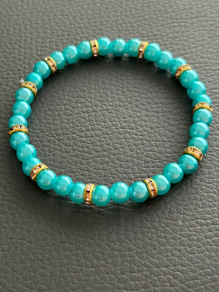 Bracelet vert turquoise et doré en perles taille unique - photo numéro 5