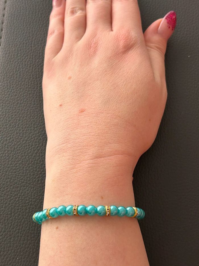 Bracelet vert turquoise et doré en perles taille unique - photo numéro 7