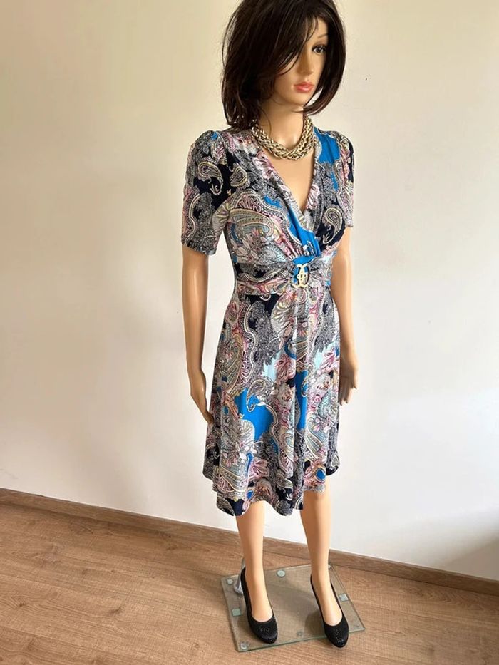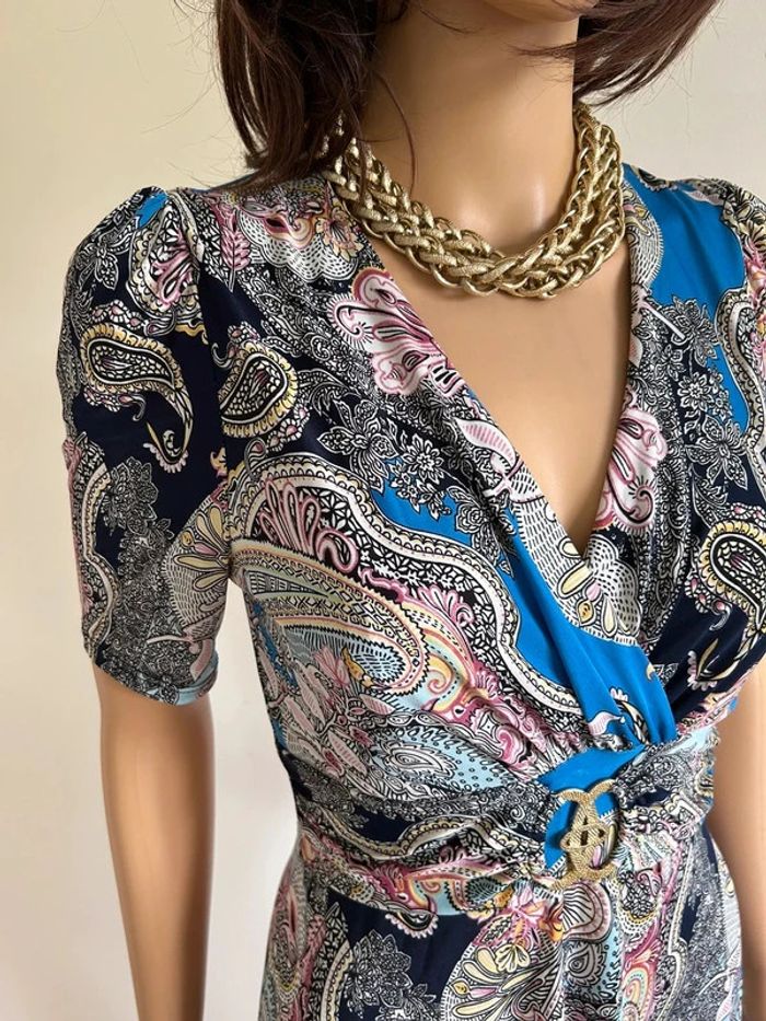 Magnifique rue imprimée à manches courtes, de marque Morgan. Taille 34. Elle est neuve avec étiquette (valeur 60€). aisselle à aisselle 39 cms à 49 cms épaule à épaule 33 cms à 43 cms taille 31 cms à 38 cms longueur depuis épaule 93 cms Le tissu est extensible 95% polyester et 5% elasthanne Un petit cadeau dans le colis 🌸 (Boîte 49)