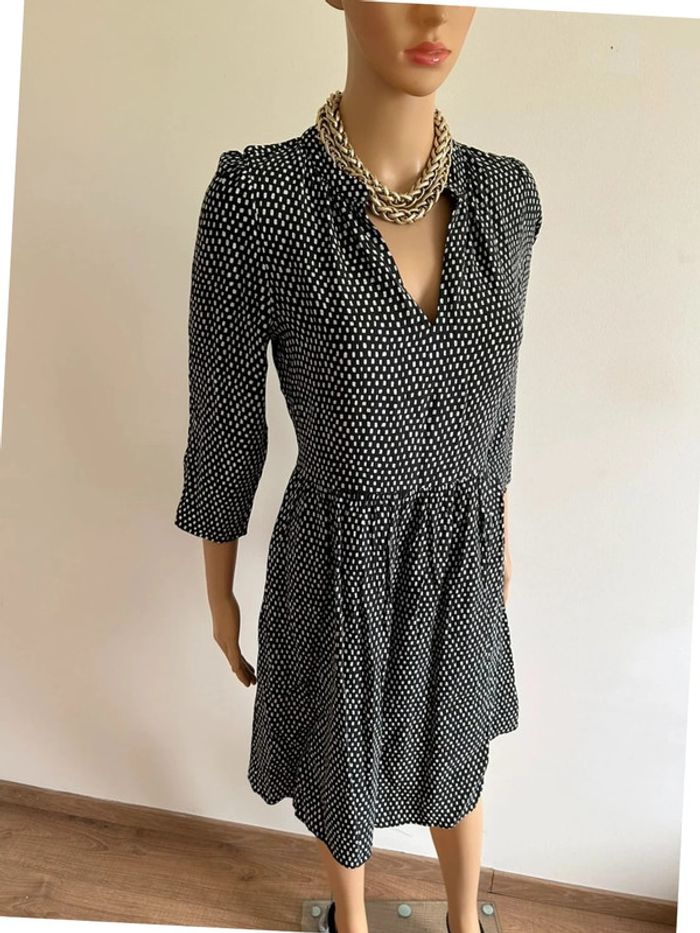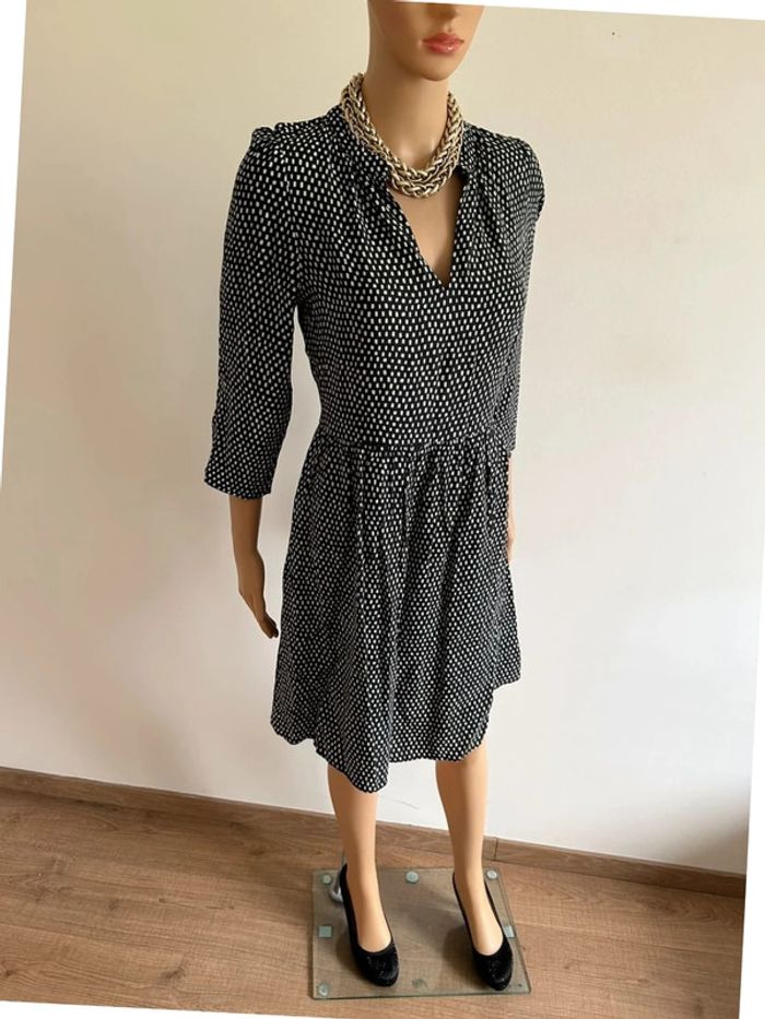 Jolie robe noire à pois blancs, avec manches 3/4, de marque Mark & Spencer. Taille 36. Portée quelques fois, en très bon état. aisselle à aisselle 45 cms épaule à épaule 36 cms taille 40 cms longueur depuis épaule 89 cms 100% viscose Le prix reste négociable dans la limite du raisonnable. Un petit cadeau dans le colis 🌸 (Boîte 40)