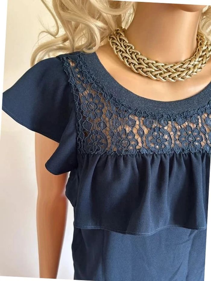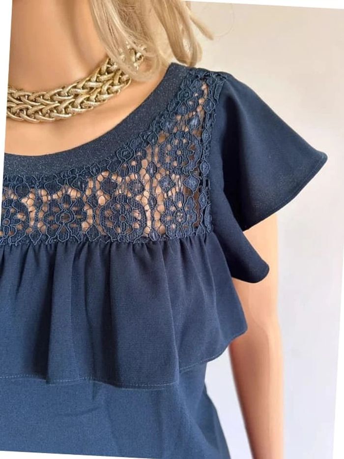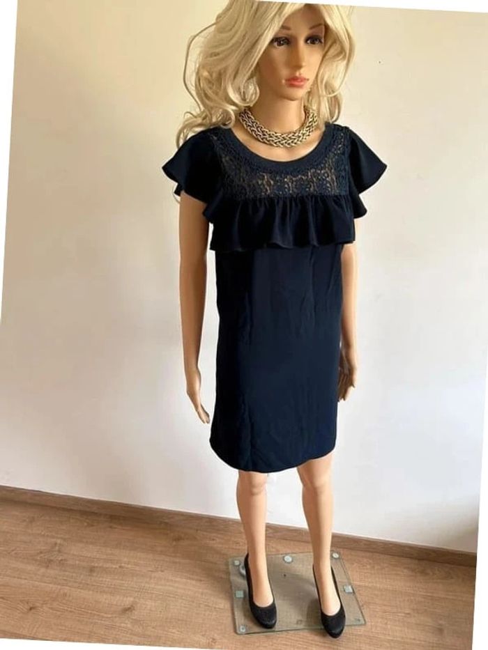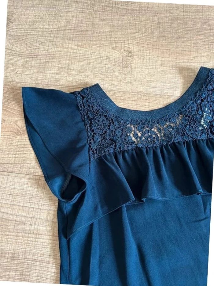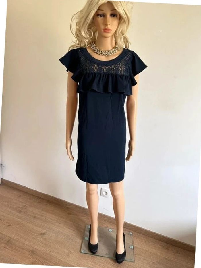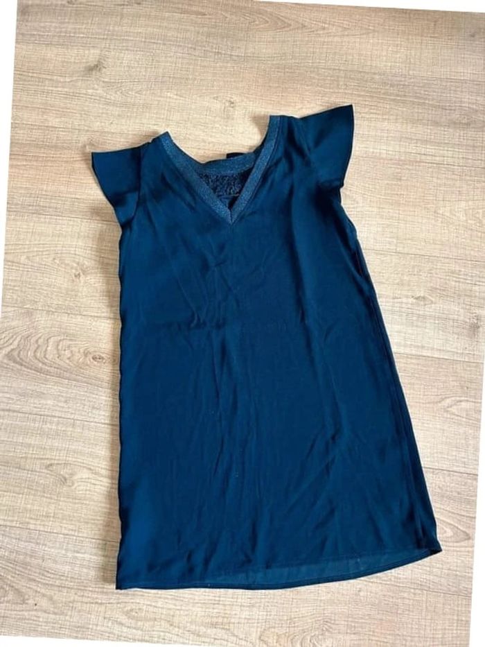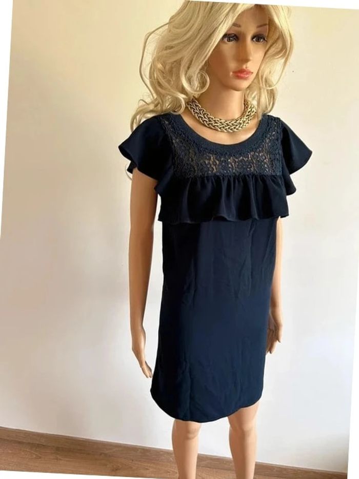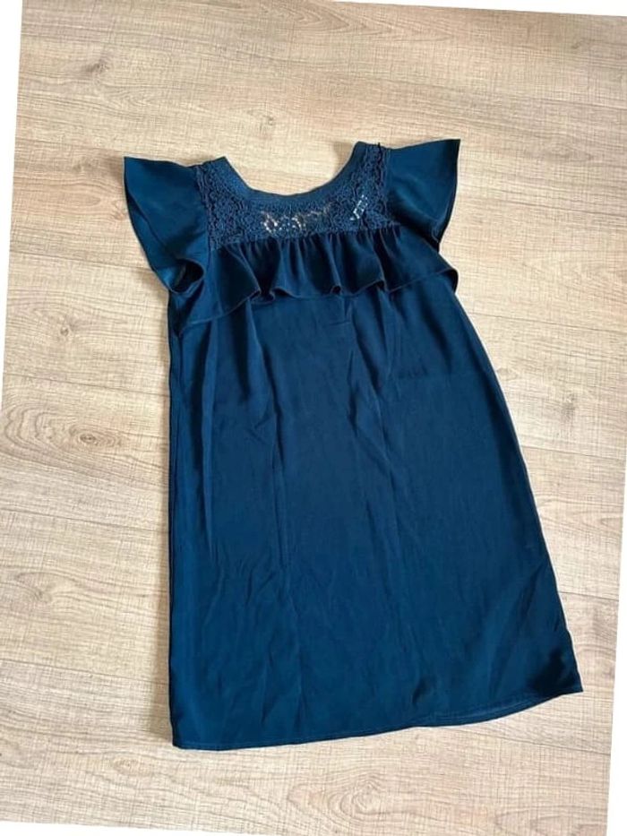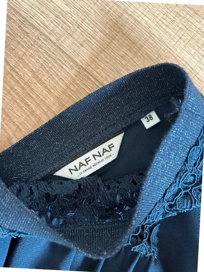 Jolie robe bleue marine à manches courtes, avec volant, de marque Naf Naf. Paillettes au niveau du col et dentelle. Taille 38. Jamais portée, état neuf. aisselle à aisselle 45 cms taille 47 cms longueur depuis épaule 85 cms 100% polyester Le prix reste négociable dans la limite du raisonnable. Un petit cadeau dans le colis 🌸 (Boîte 46)