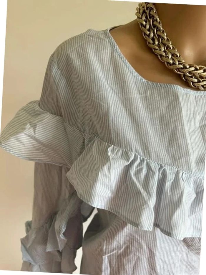 Blouse bleue et blanche à rayures et à manches longues Vila taille L bon état - photo numéro 13