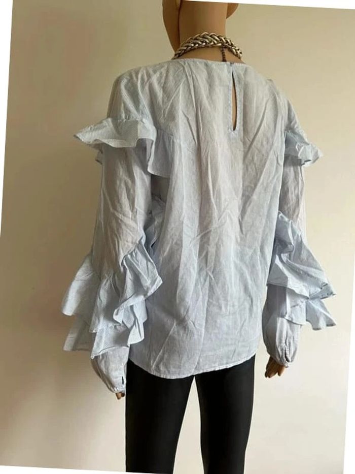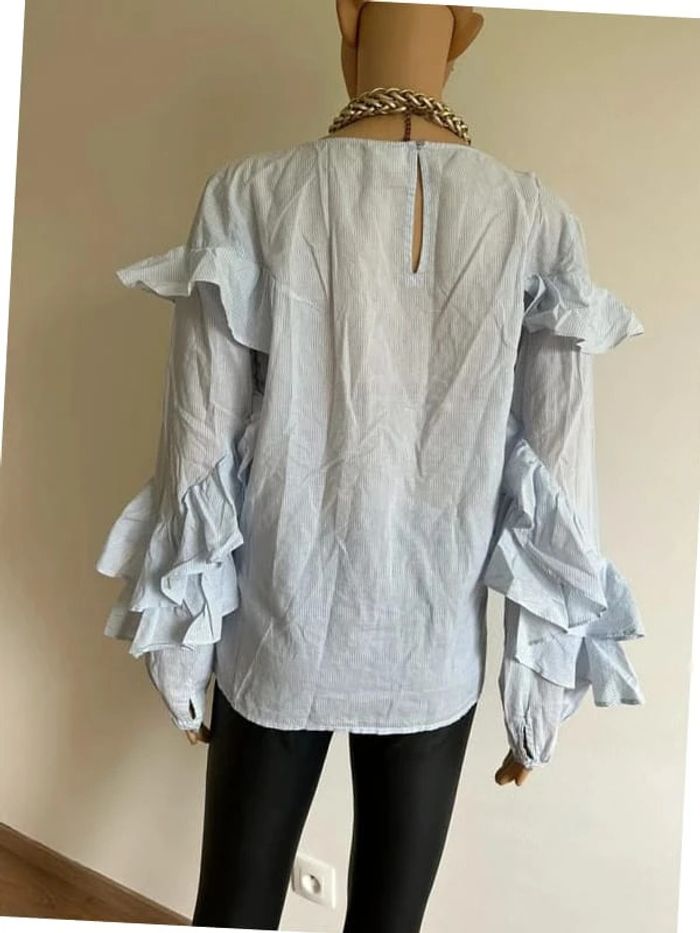 Blouse bleue et blanche à rayures et à manches longues Vila taille L bon état - photo numéro 12