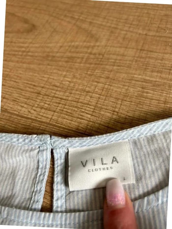 Blouse bleue et blanche à rayures et à manches longues Vila taille L bon état - photo numéro 11