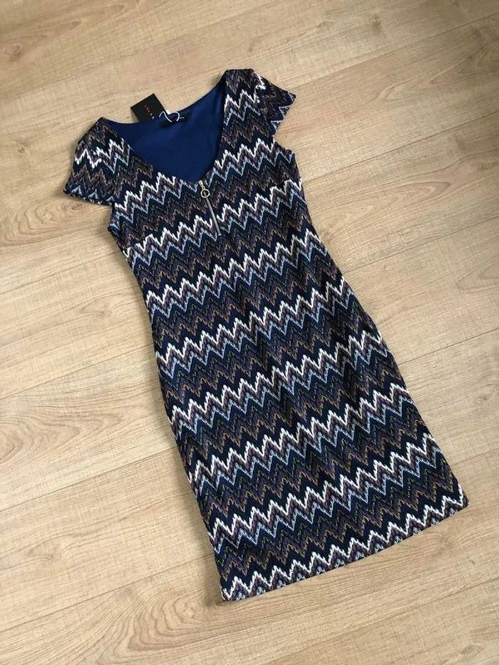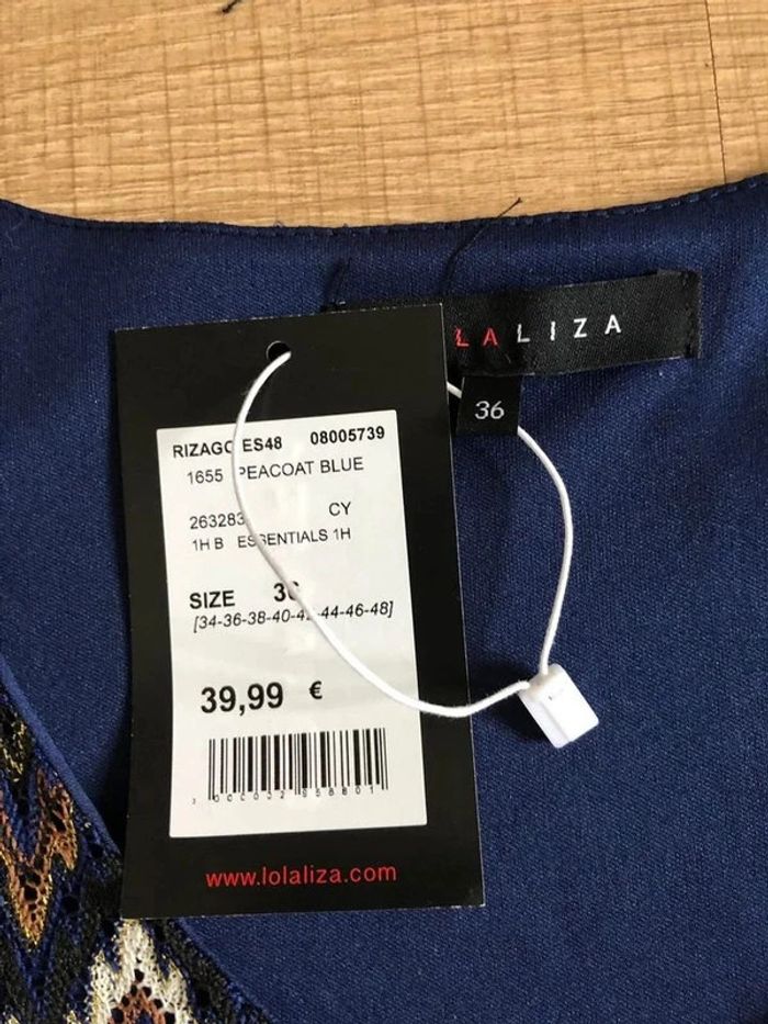 Magnifique robe multicolore à manches courtes, de marque LolaLiza. Taille française 38. Elle est neuve avec étiquette (valeur 40€). aisselle à aisselle 41 cms épaule à épaule 37 cms taille 36 cms longueur depuis épaule 94 cms Le tissu est extensible Le prix reste négociable dans la limite du raisonnable. Un petit cadeau dans le colis.