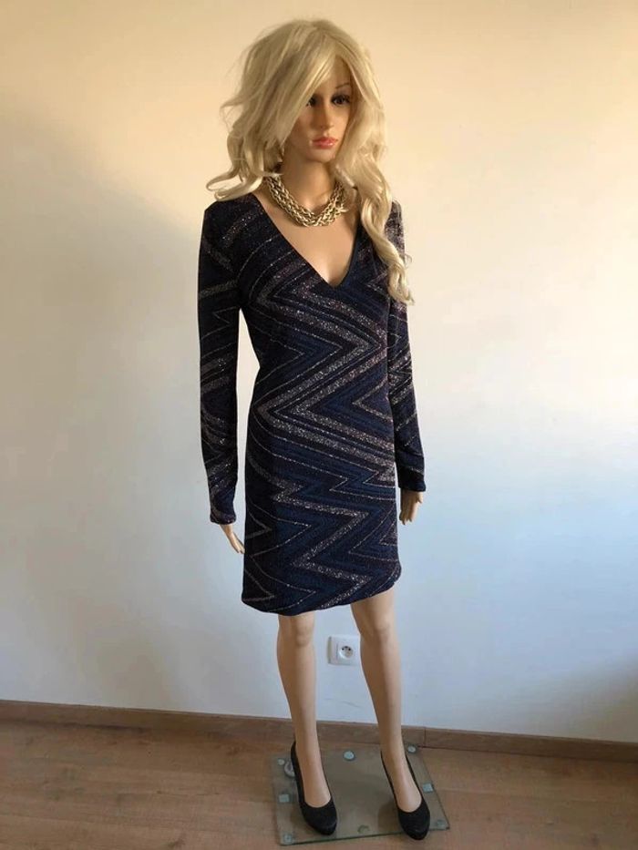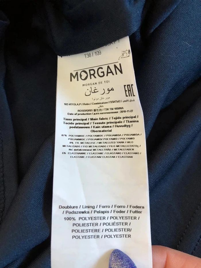Magnifique robe pailletée à manches longues, de marque Morgan. Taille 38. Elle est neuve avec étiquette (valeur 65€). Jamais portée car je suis trop serrée dedans. aisselle à aisselle 45 cms et plus épaule à épaule 39 cms et plus longueur manches 60 cms taille 44 cms et plus longueur depuis épaule 86 cms Le tissu est extensible 87% polyamide, 8% fil métallisé et 5% elasthanne Le prix reste négociable dans la limite du raisonnable. Un petit cadeau dans le colis.