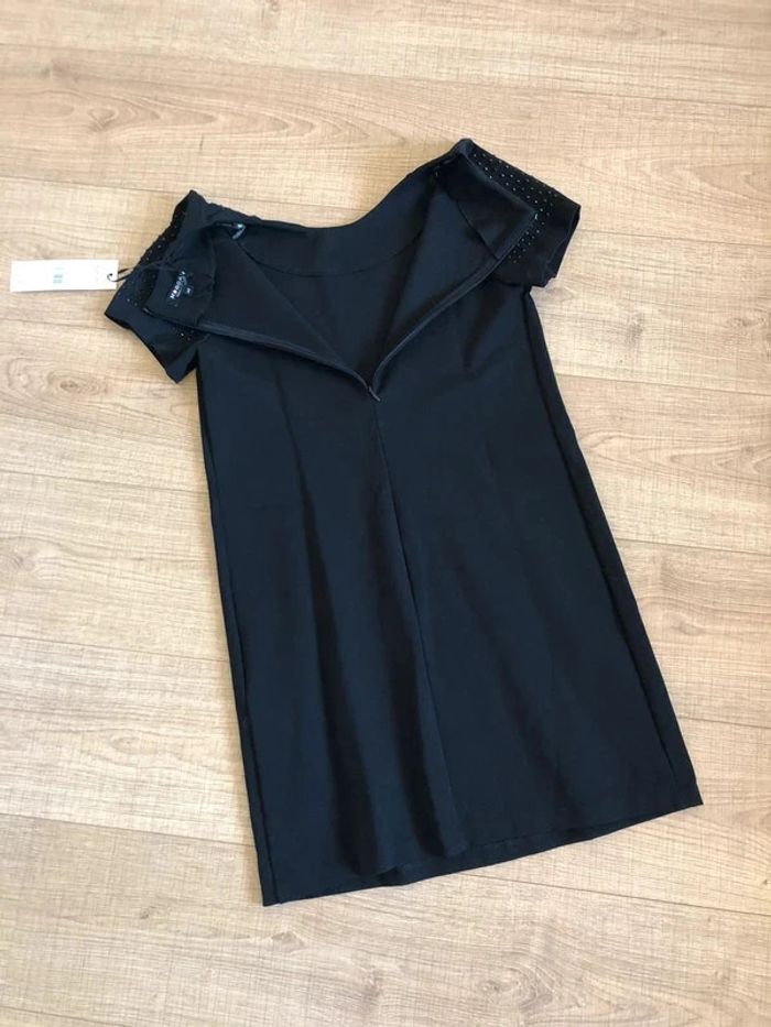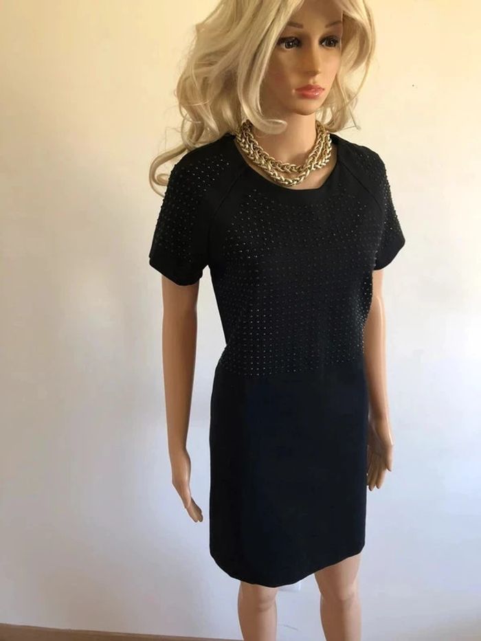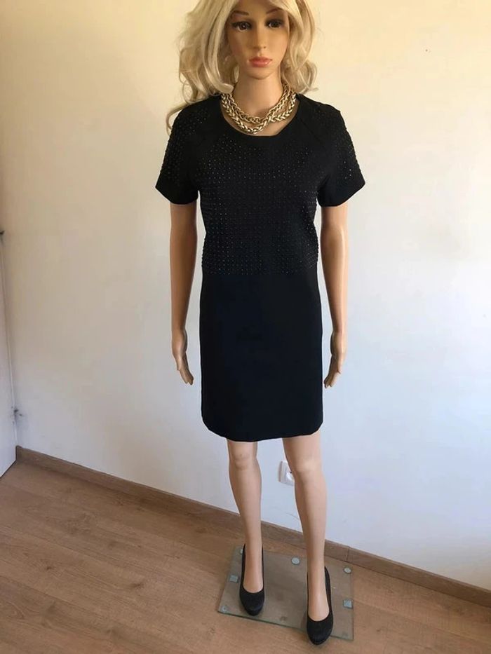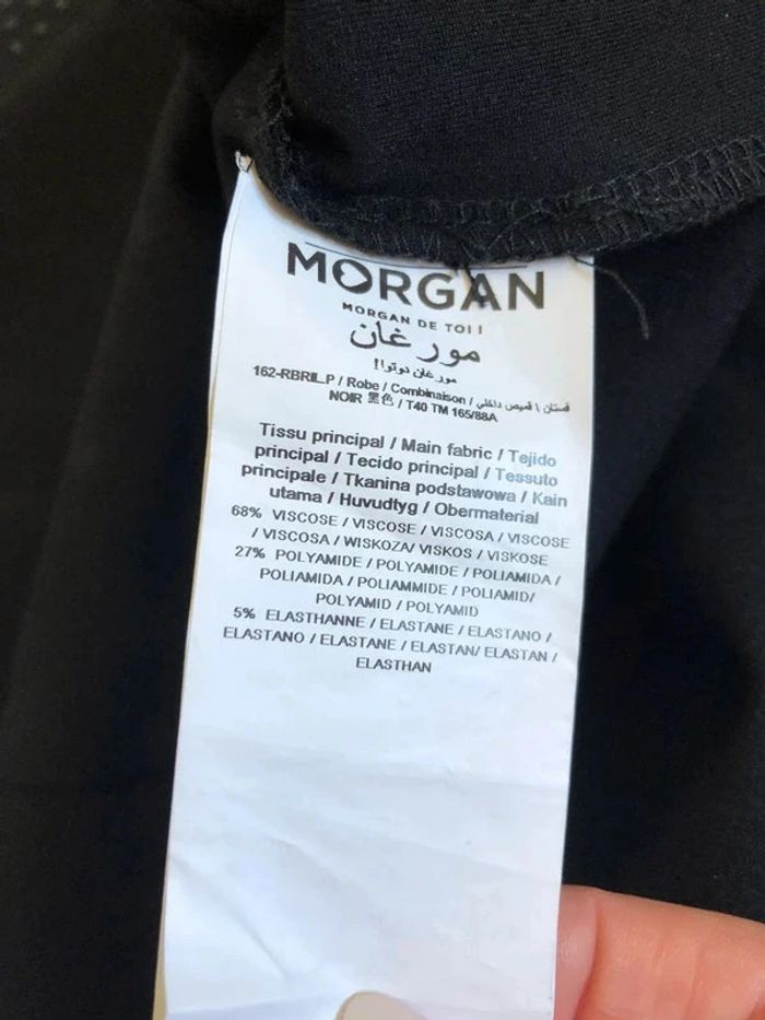 Magnifique robe noire neuve à manches courtes, avec strass noirs sur le devant, de marque Morgan. Fermeture dans le dos. Taille 40. Elle est neuve avec étiquette (valeur 75€). aisselle à aisselle 43 cms à 47 cms taille 43 cms et plus longueur depuis épaule 87 cms Le tissu est extensible 68% viscose, 27% polyamide et 5% elasthanne Le prix reste négociable dans la limite du raisonnable. Un petit cadeau accompagnera cet achat 😊 (Boîte 17)