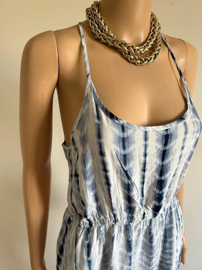Robe bleue marine et bleue claire, à bretelles, de marque Molly Bracken. Taille M. Portée quelques fois, en très bon état. aisselle à aisselle 43 cms taille 35 cms à 46 cms longueur depuis épaule 88 cms La taille est extensible 100% viscose Le prix reste négociable dans la limite du raisonnable. Un petit cadeau dans le colis 🌸 (Boîte 44)