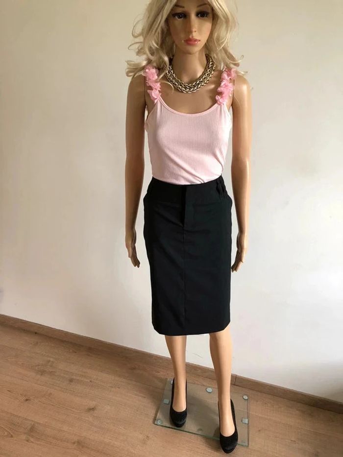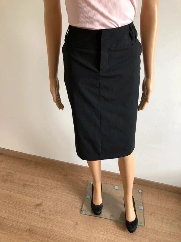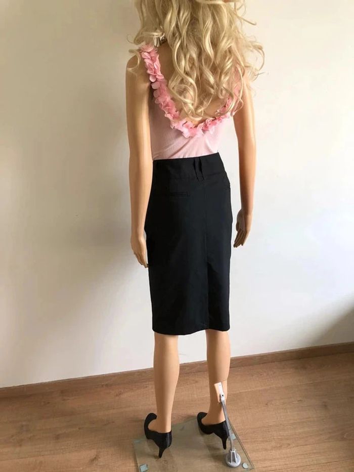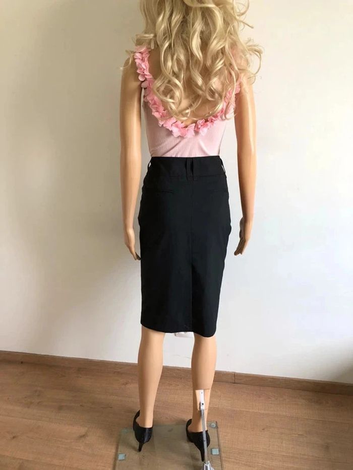 Jolie jupe mi longue noire à rayures, de marque Mexx. Taille 40. Elle est neuve avec étiquette (valeur 60€). taille 40 cms longueur 62 cms 76% polyester, 22% viscose et 2% elasthanne Le prix reste négociable dans la limite du raisonnable. Un petit cadeau dans le colis.