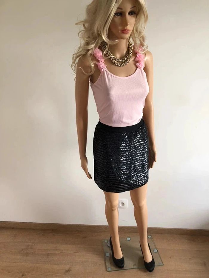 Jupe noire neuve avec sequins Cache Cache taille 36 (valeur 30€) - photo numéro 7